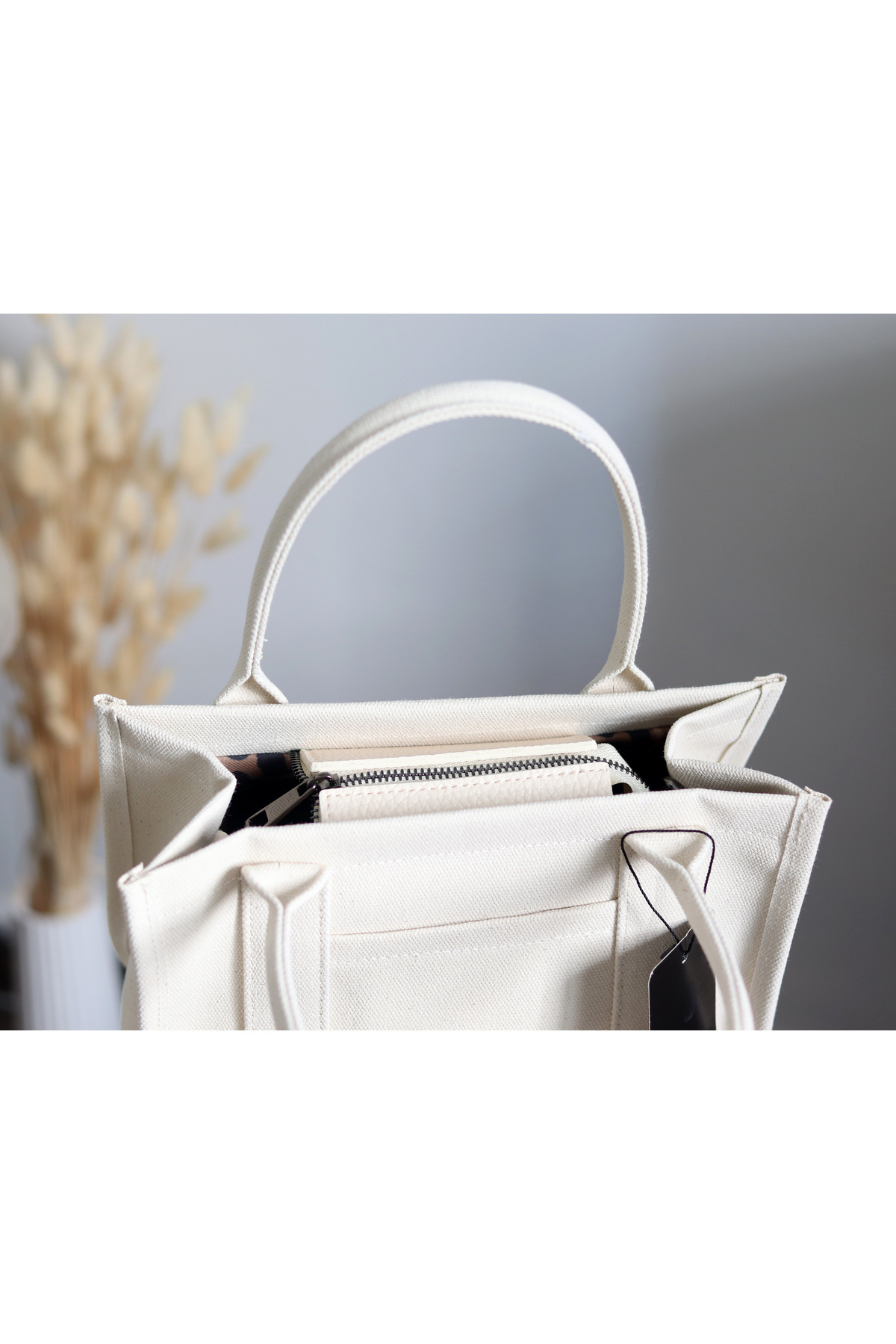 Krem Orta Boy Mumlu Kanvas Çanta Krem Orta Boy Mumlu Kanvas Çanta LS00175 تک سایز