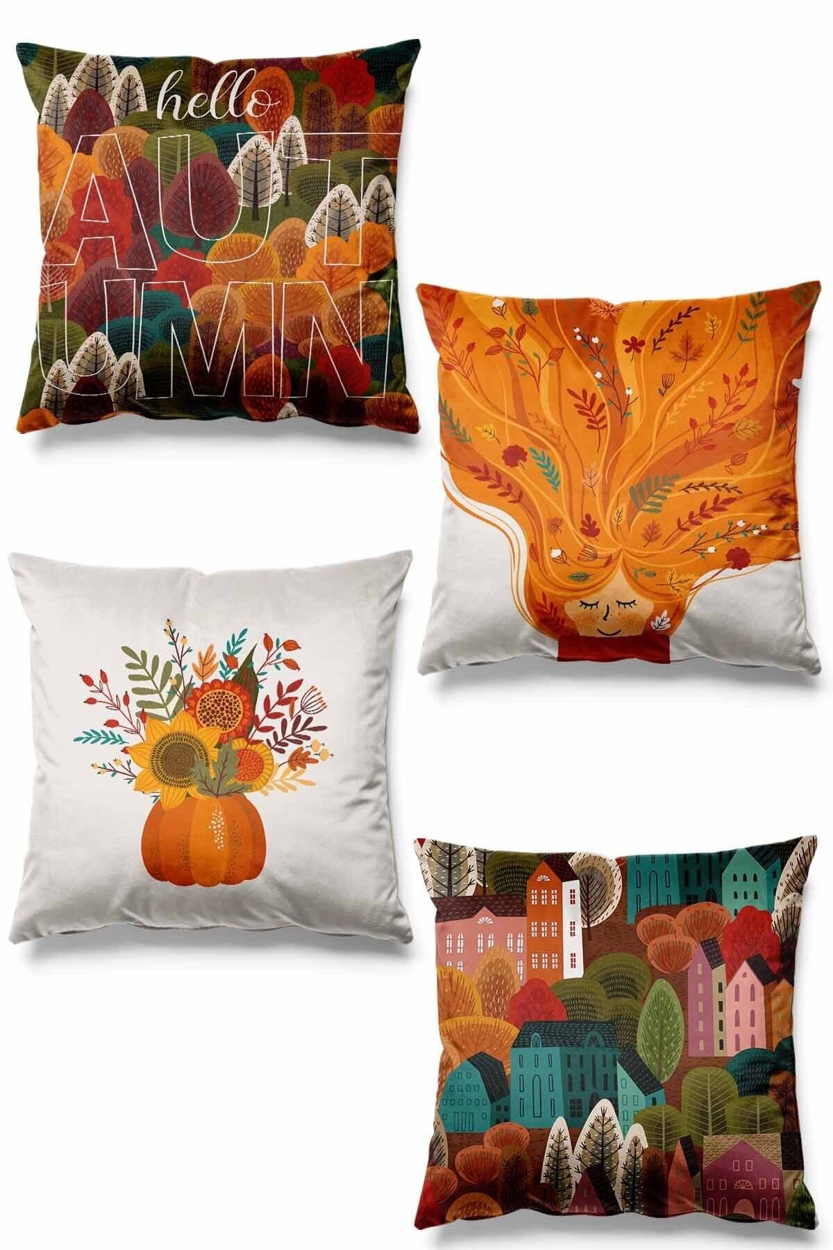 Çift Tarafı Baskılı 2'li Set Süet Kırlent Kılıfı - Çayır Çift Tarafı Baskılı 2'li Set Süet Kırlent Kılıfı - Çayır PLV0S671