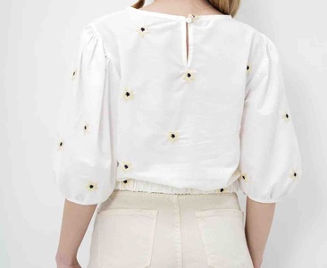 Kadın Beyaz Bisiklet Yaka Outcut Kesim Nakış İşlemeli Crop Keten Bluz ALC-X14106 Kadın Beyaz Bisiklet Yaka Outcut Kesim Nakış İşlemeli Crop Keten Bluz ALC-X14106 42