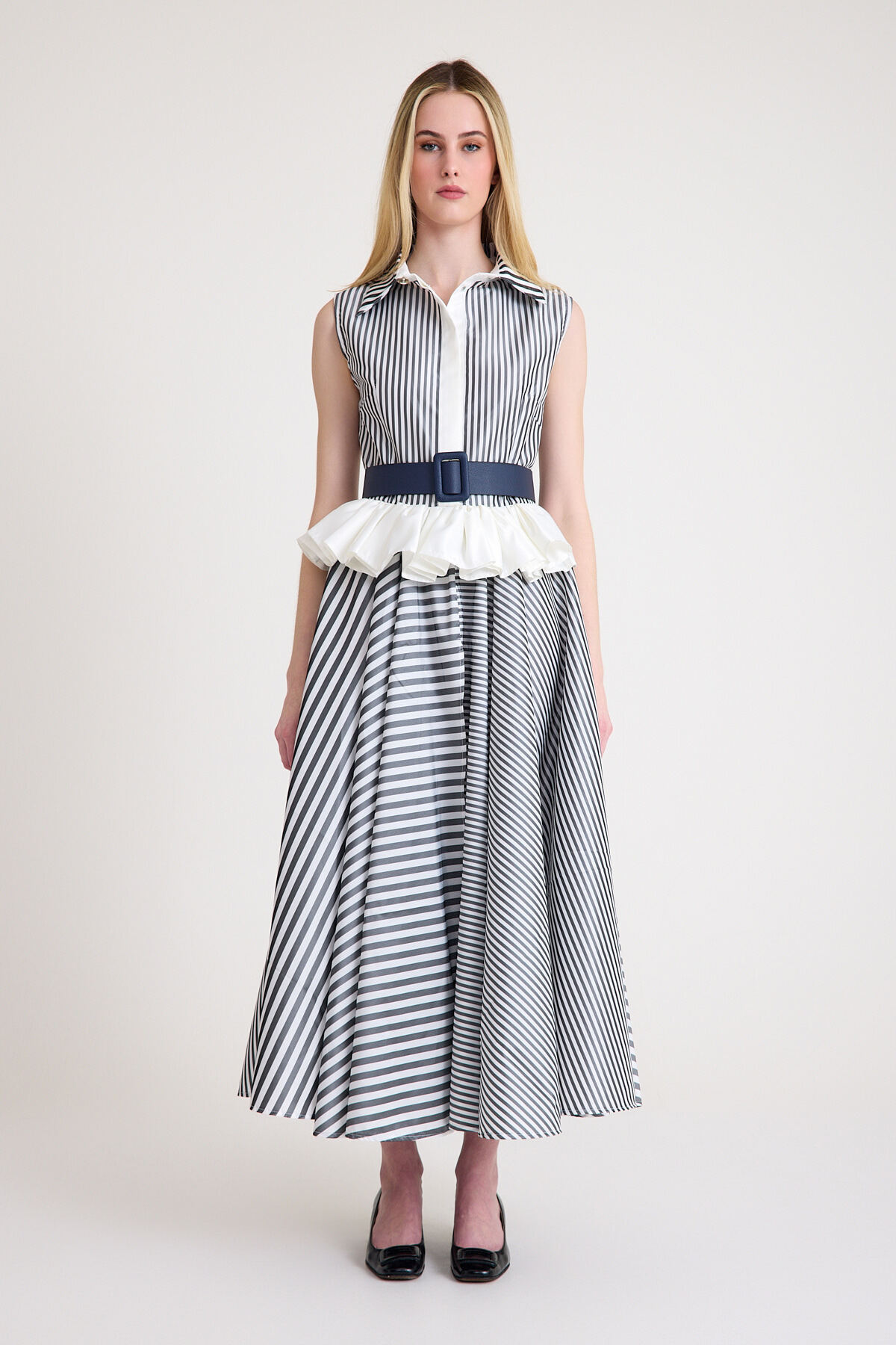 Gri & Lacivert Karışımlı İpek Brokar Kumaş Maxi Gömlek Elbise Gri & Lacivert Karışımlı İpek Brokar Kumaş Maxi Gömlek Elbise MR-EKS-04 46