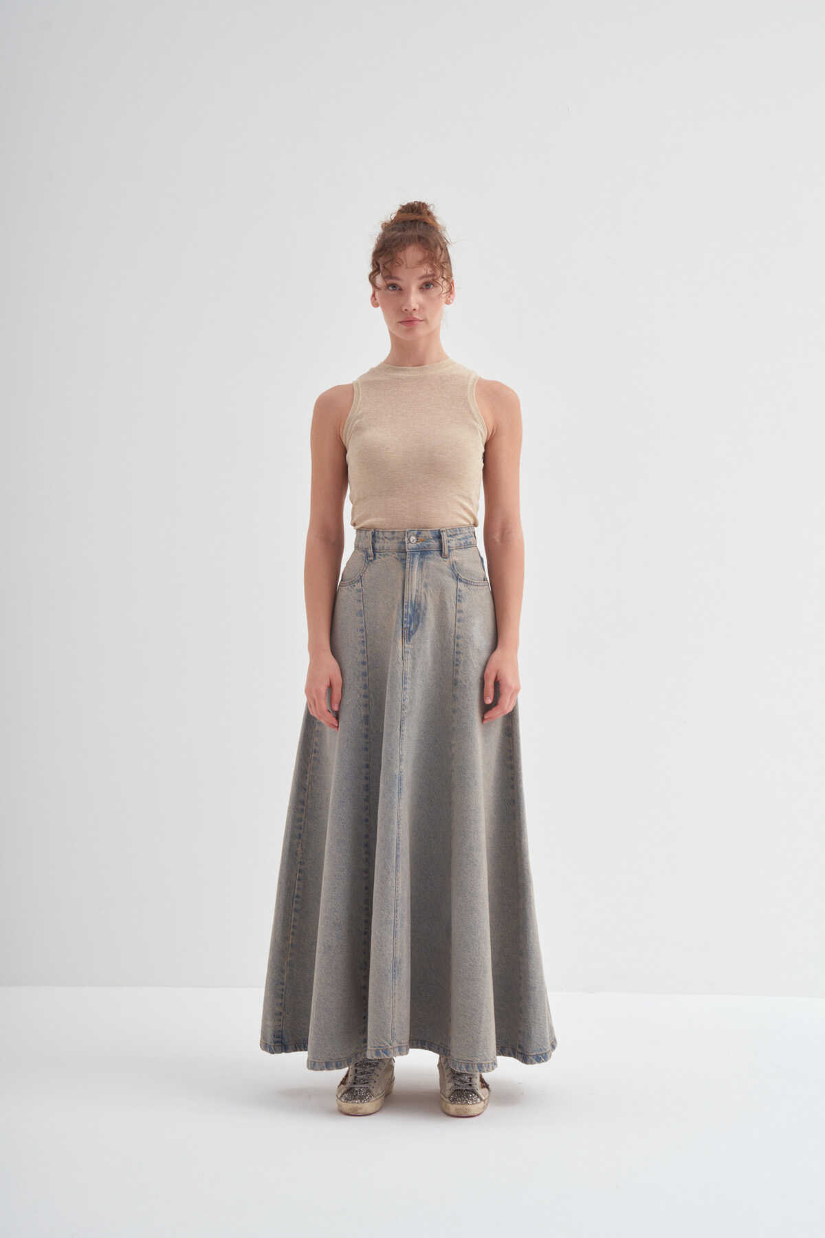 Çapraz Kesim Denim Etek Füme Çapraz Kesim Denim Etek Füme 10093042 42