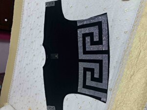 Bol Kalıp Büyük Beden Omuzları Açık Yazılı Crystal Taşlı Siyah Pamuk Kadın T-shirt Bol Kalıp Büyük Beden Omuzları Açık Yazılı Crystal Taşlı Siyah Pamuk Kadın T-shirt 840 5XL
