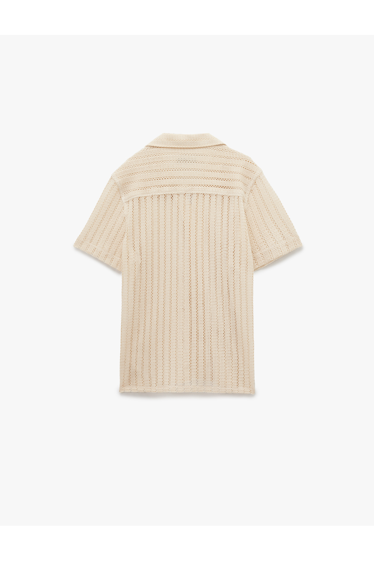 Apaş Yaka Pamuklu Regular Fit Ajurlu Kısa Kollu Gömlek Apaş Yaka Pamuklu Regular Fit Ajurlu Kısa Kollu Gömlek 5SAM60010HK 2XL