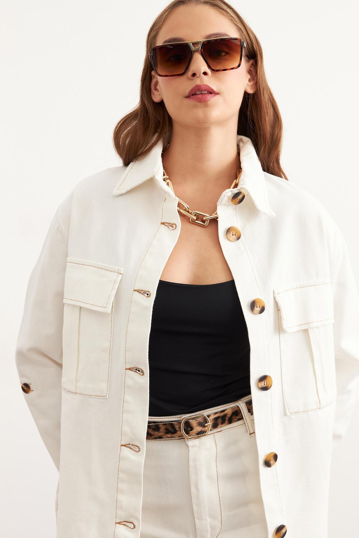Önü Düğmeli Cep Detaylı Gabardin Ceket EKRU Önü Düğmeli Cep Detaylı Gabardin Ceket EKRU TX7F39D00B12294 L