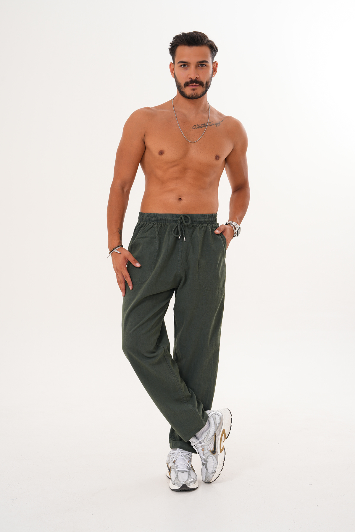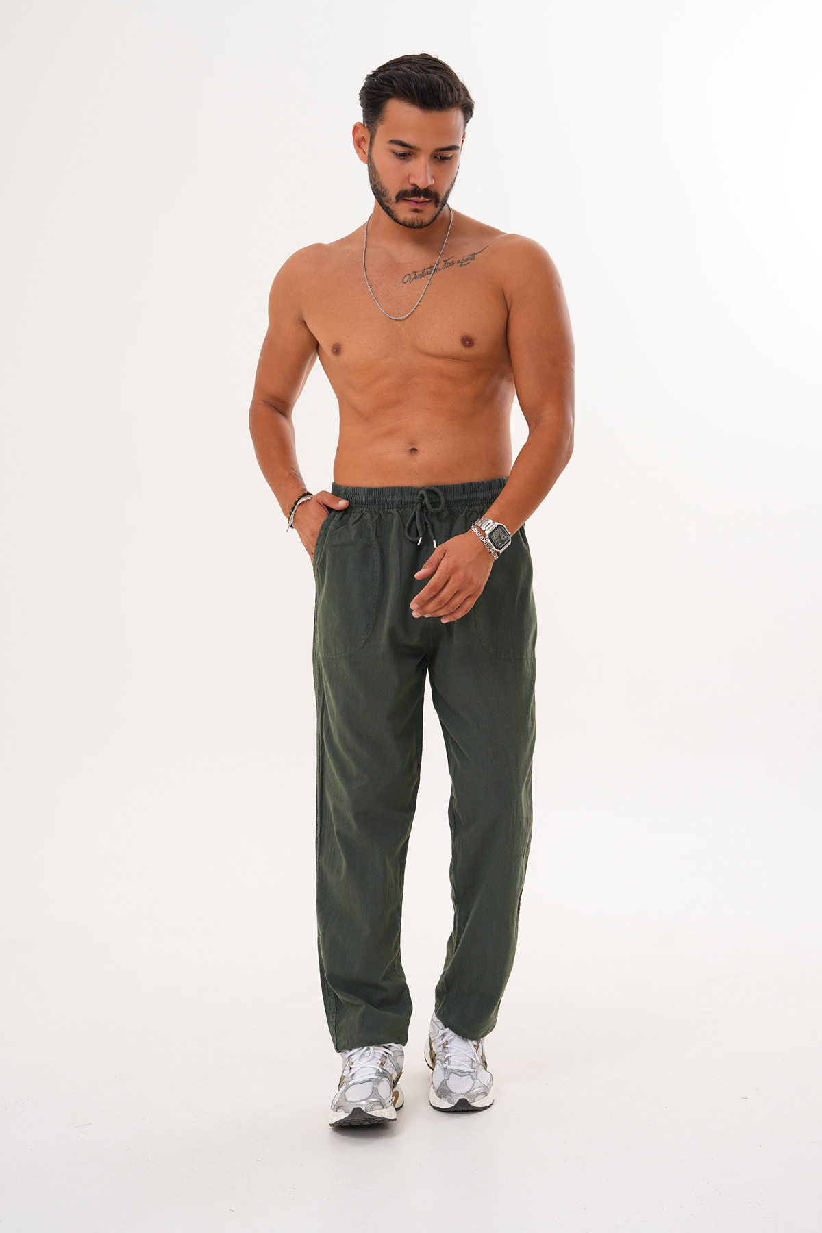 Haki Erkek Pamuk Keten Karışımlı Rahat Kalıp Pantolon Haki Erkek Pamuk Keten Karışımlı Rahat Kalıp Pantolon BBB-DAP1 3XL