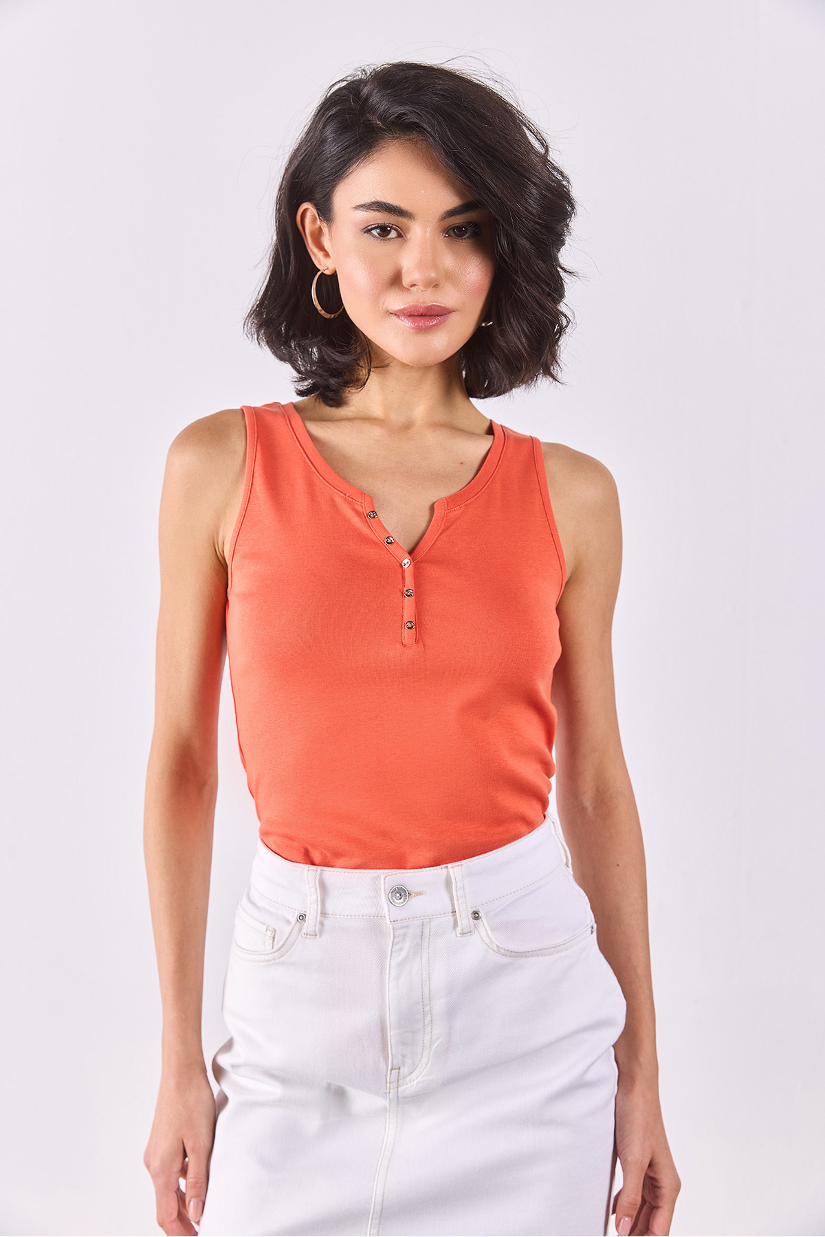 Matilda Düğme Detaylı Vücuda Oturan Atlet - MERCAN Matilda Düğme Detaylı Vücuda Oturan Atlet - MERCAN 2Y2529541 XL