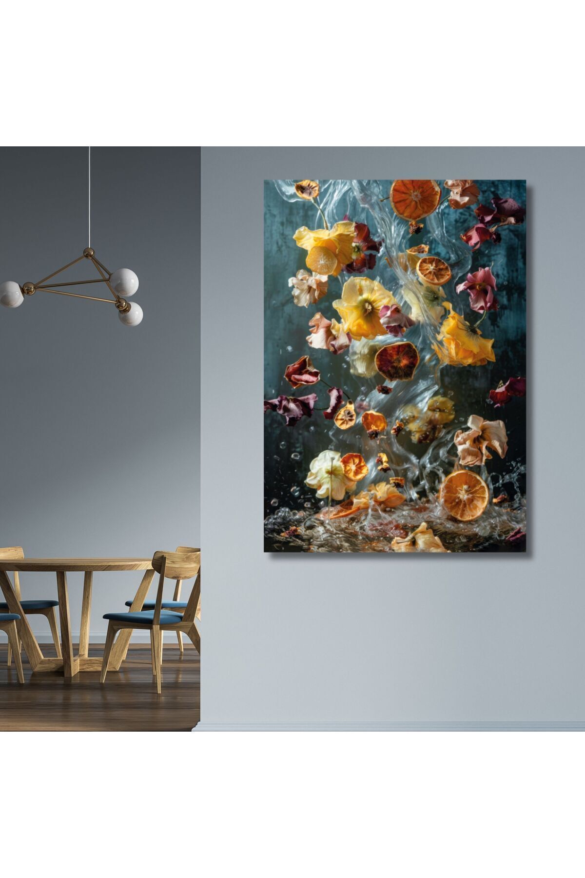 Tekli Dikey Kanvas Mutfak Tablosu Portakal Çiçekleri ve Su Tekli Dikey Kanvas Mutfak Tablosu Portakal Çiçekleri ve Su GAGq39 70 x 100