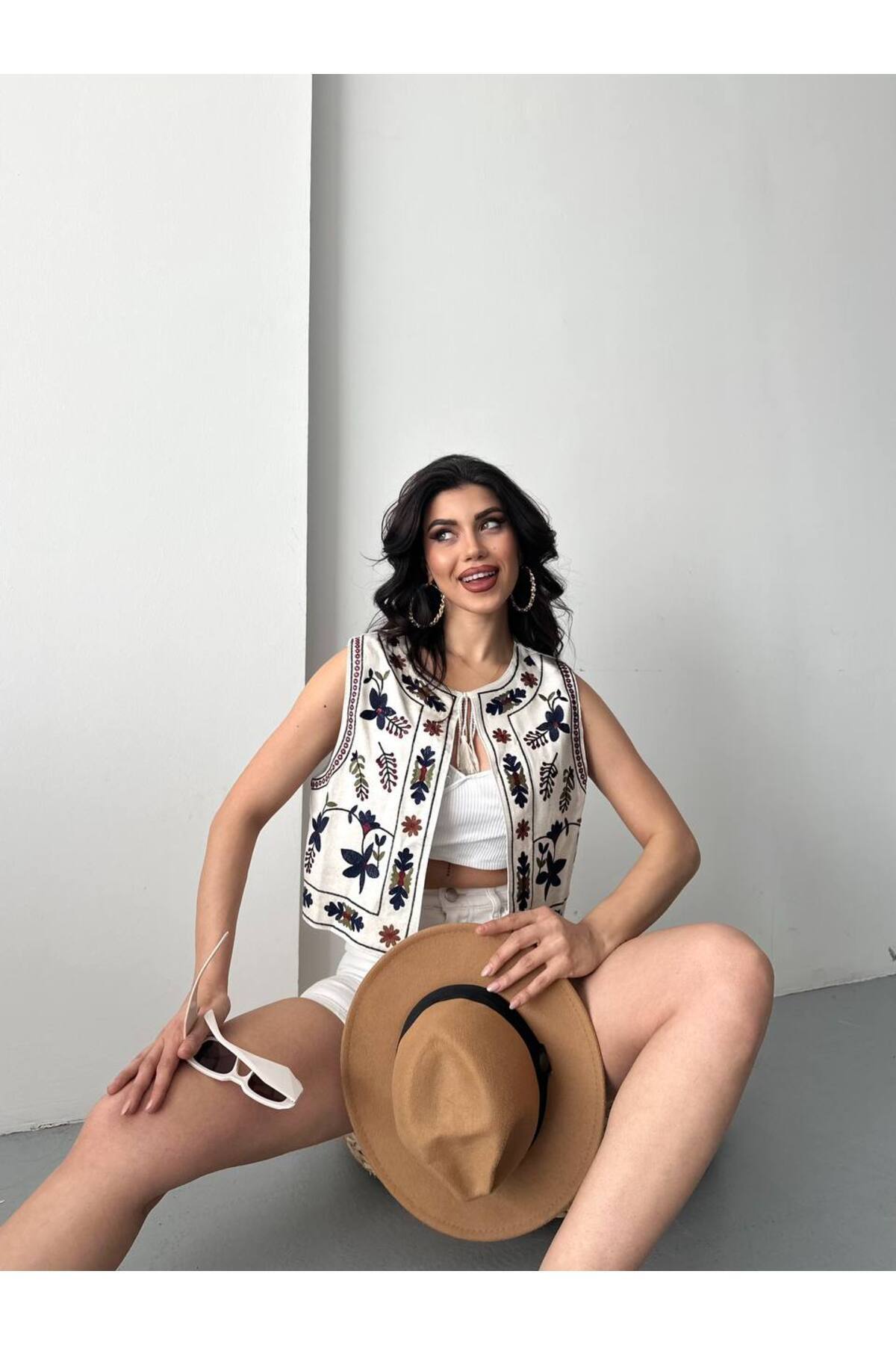Nakış Detaylı Bağlamalı Yelek Nakış Detaylı Bağlamalı Yelek 58104 L