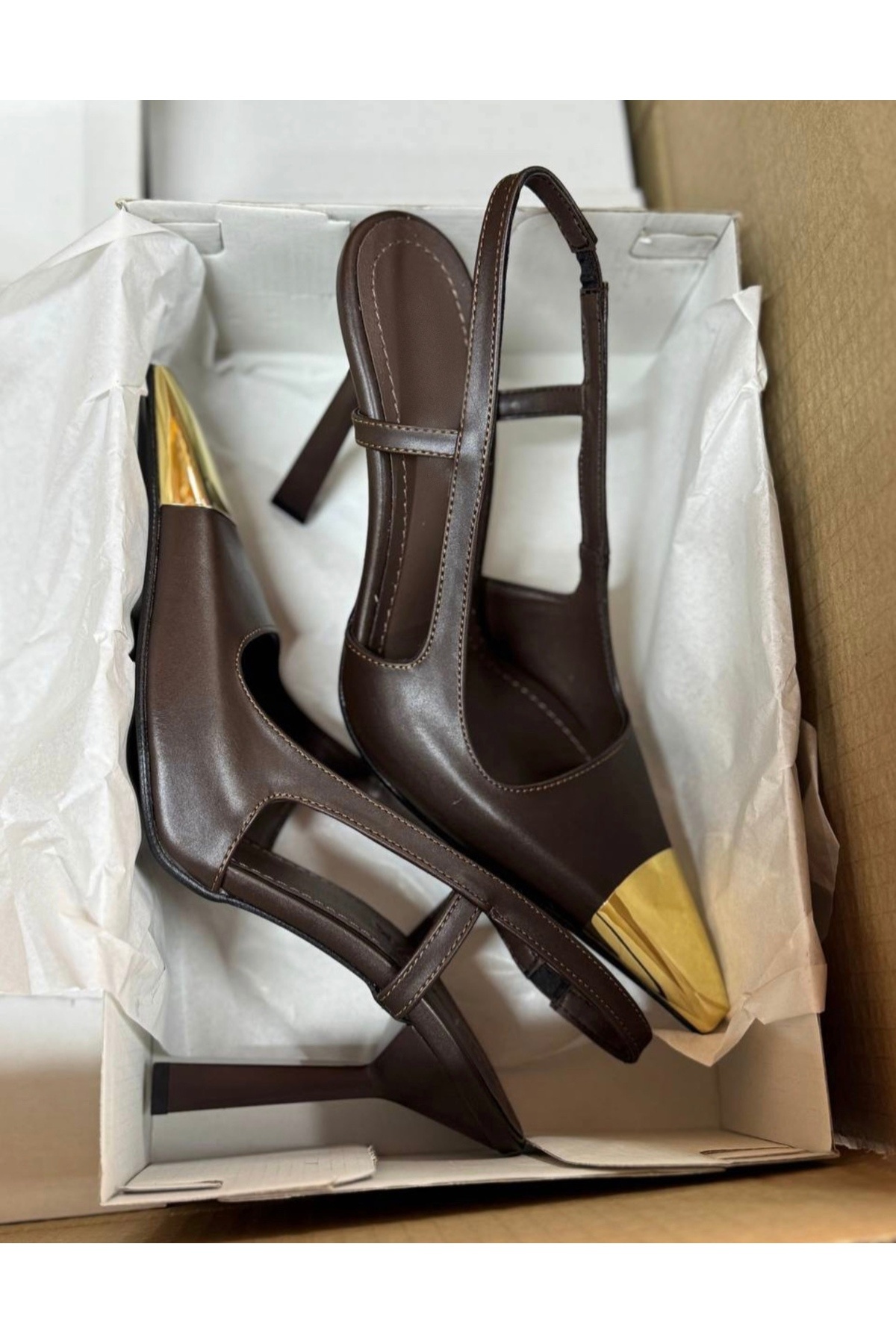 FLARE Kahverengi Cilt Gold Detaylı Kadın Topuklu Ayakkabı FLARE Kahverengi Cilt Gold Detaylı Kadın Topuklu Ayakkabı 124-5709 40