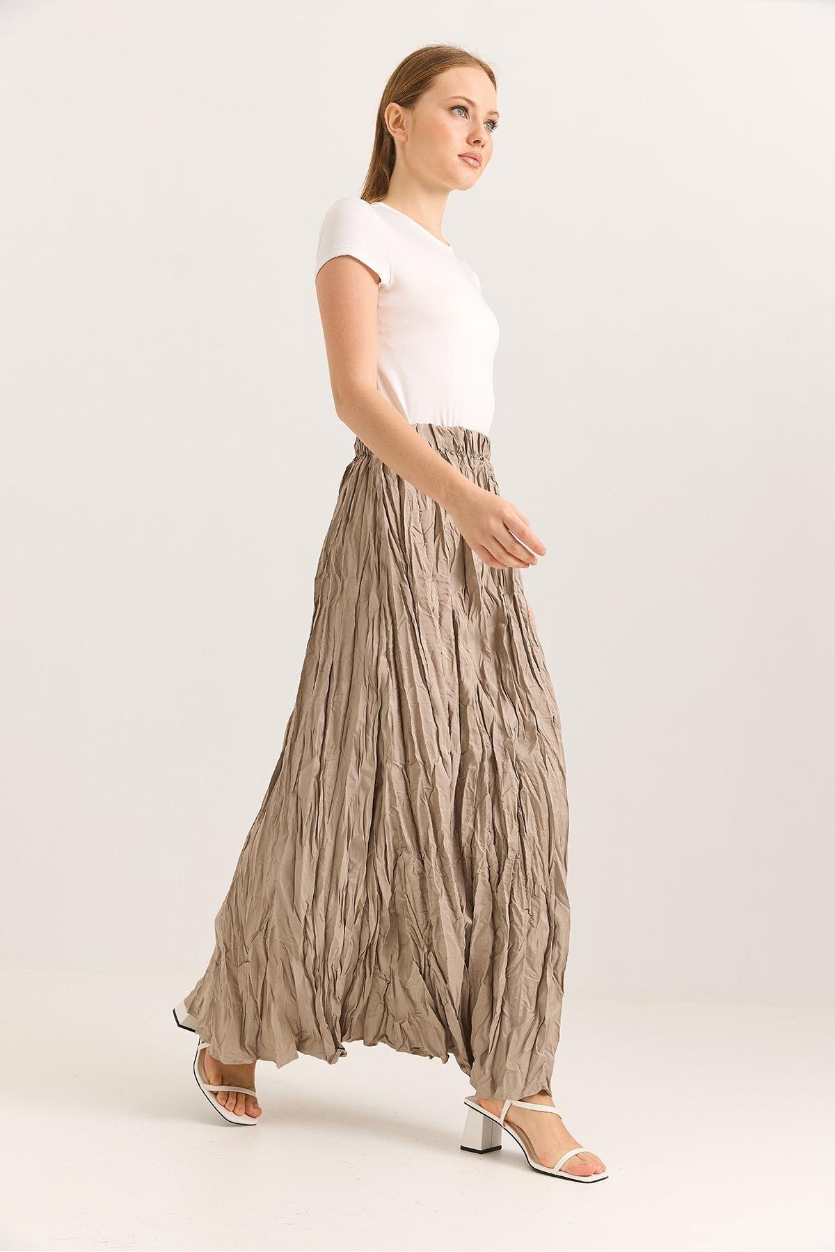 Kırışık Model Beli Lastikli Kadın Etek Vizon Kırışık Model Beli Lastikli Kadın Etek Vizon 250542ETK L