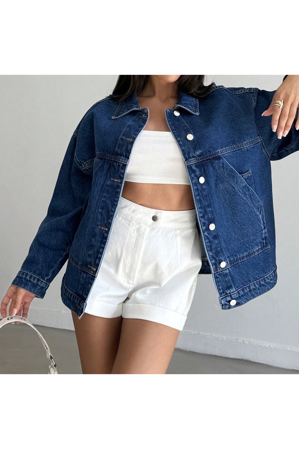 Püsgüllü Cep Detaylı Kadın Jean Ceket Püsgüllü Cep Detaylı Kadın Jean Ceket YYZCKT0093 XL