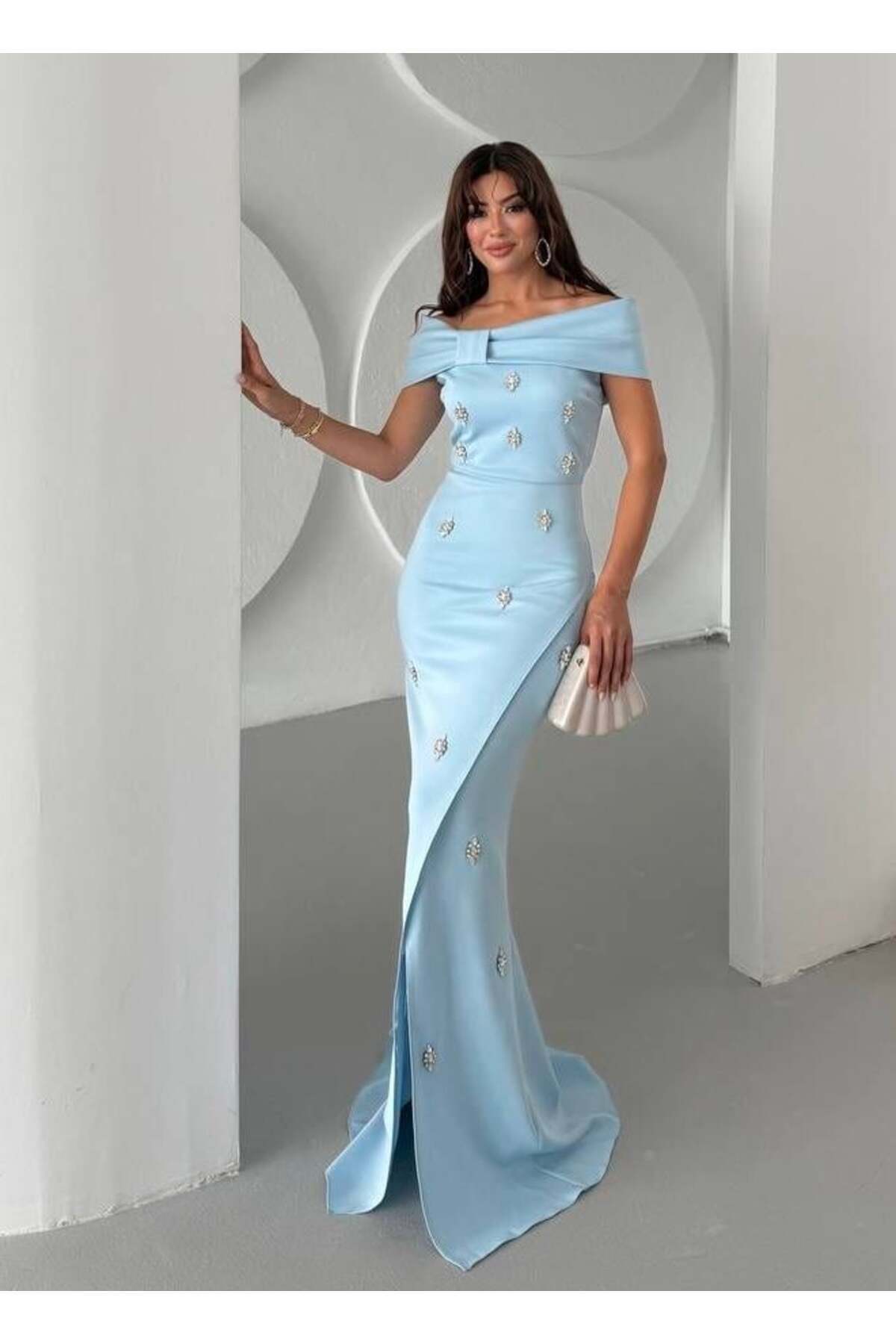Kadın Kayık Yaka Taş İşlemeli Uzun Kol Balık Abiye Elbise Su Yeşili, Lacivert Kadın Kayık Yaka Taş İşlemeli Uzun Kol Balık Abiye Elbise Su Yeşili, Lacivert ZKS000311 XL