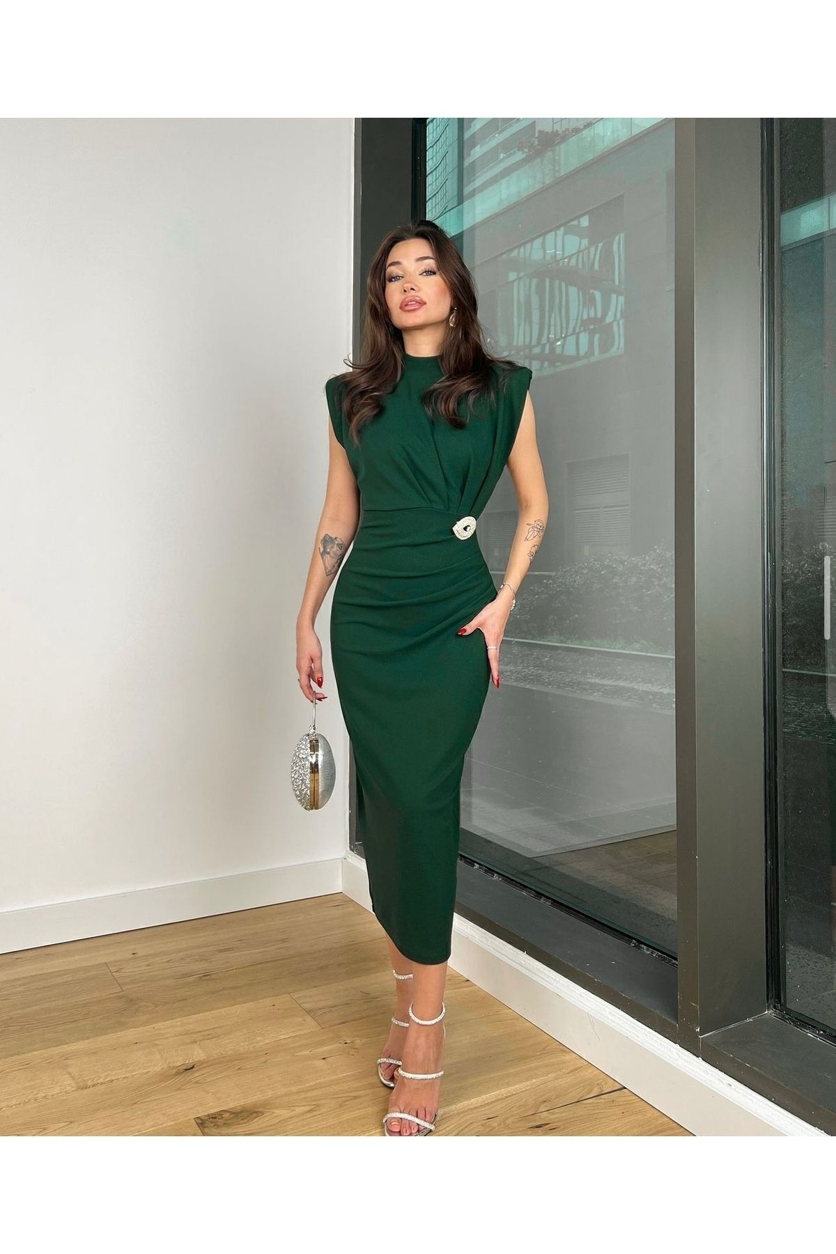 kadın vatkalı broşlu dik yaka kalem elbise kadın vatkalı broşlu dik yaka kalem elbise 876656566hy L
