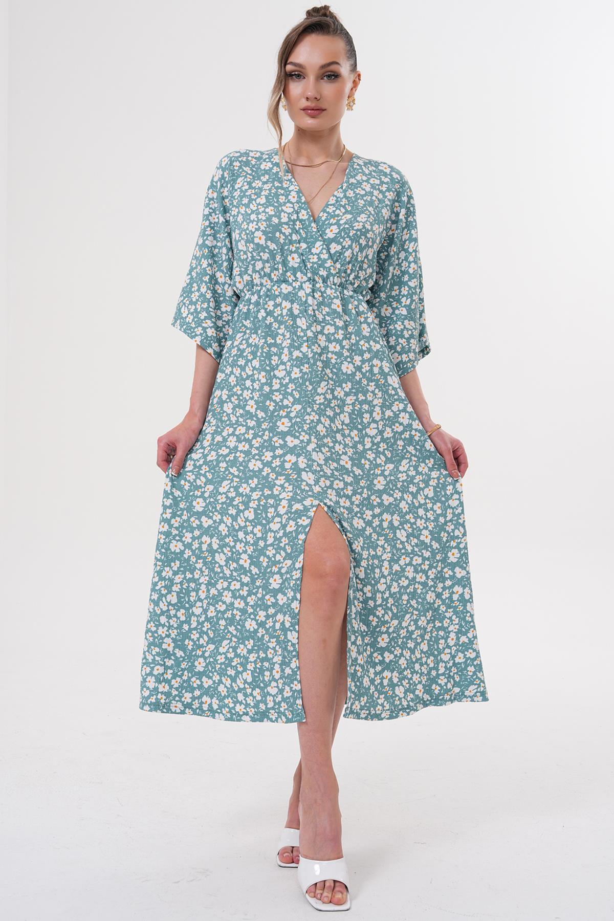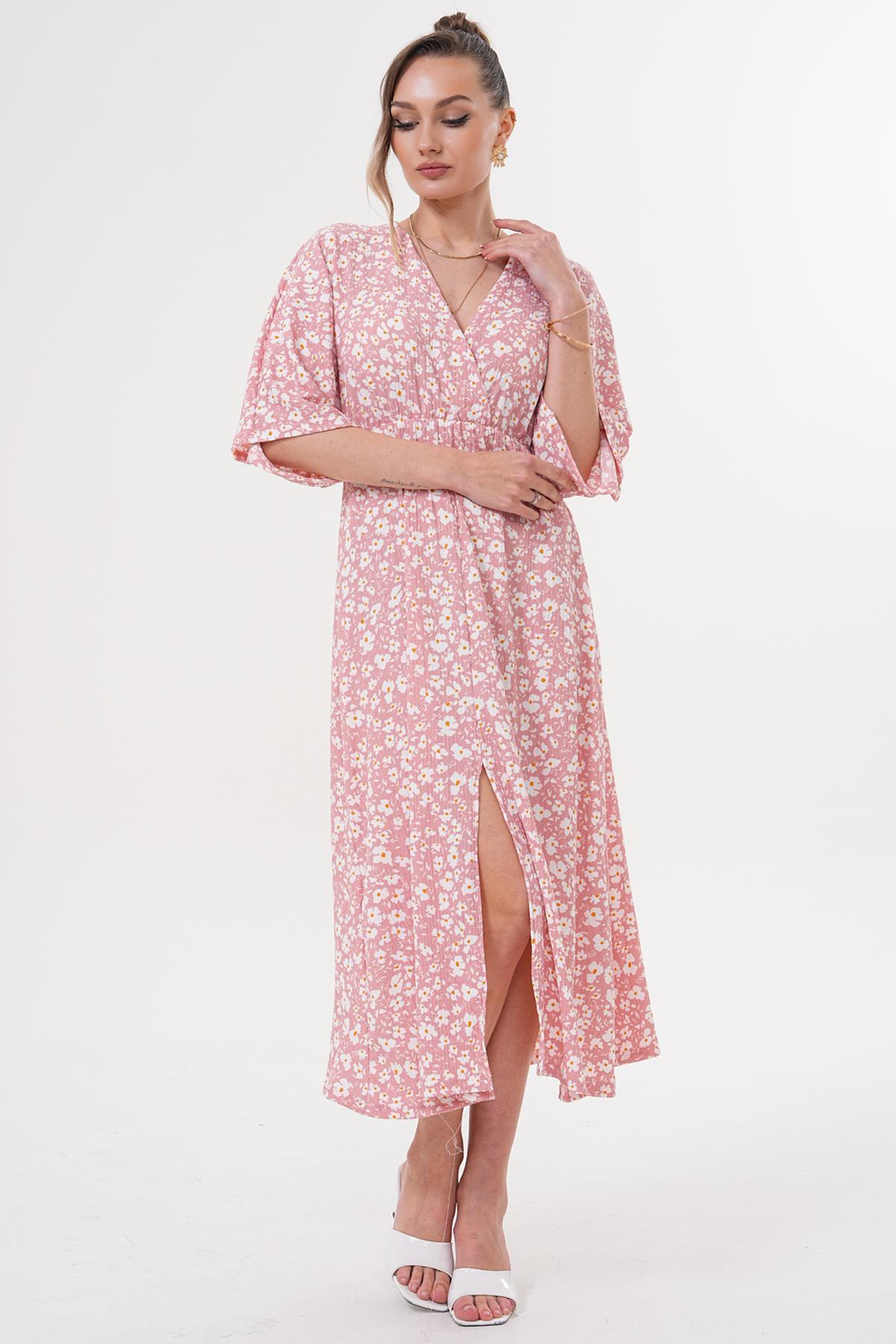Kruvaze Yaka Beli Lastikli Papatya Desen Elbise Kruvaze Yaka Beli Lastikli Papatya Desen Elbise 5Y-ELB0003 40