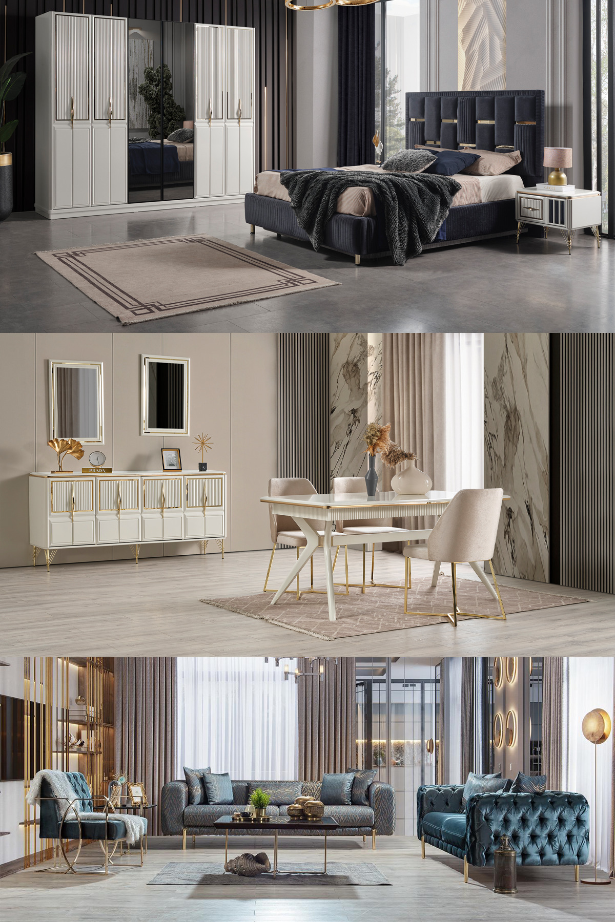 - تنظیم محتوا : Bazalı Karyola + 2 Komodin + Şifonyer + Gardırop