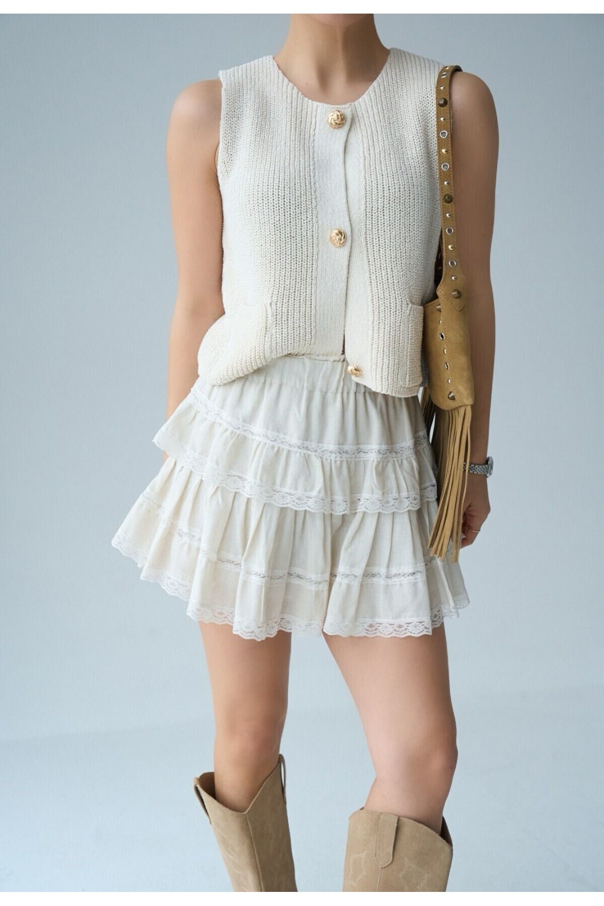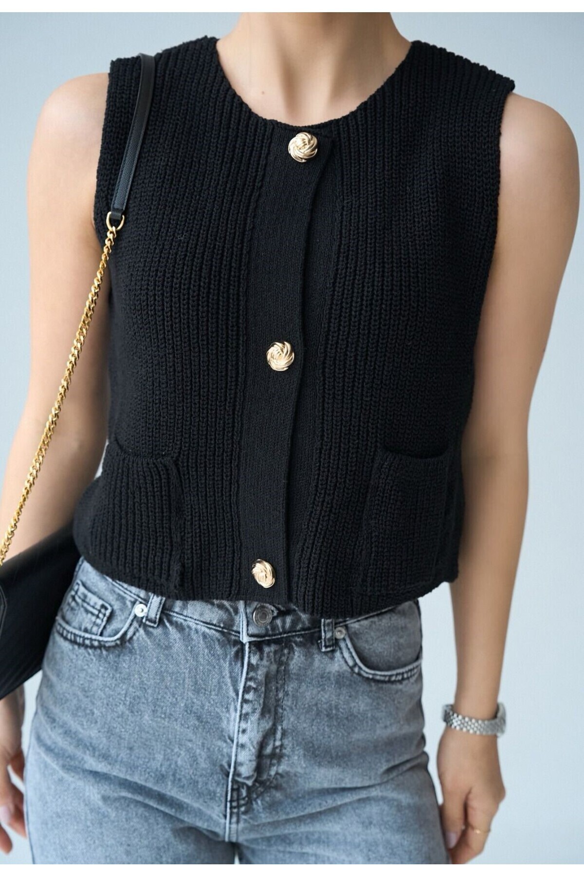 Kadın Pembe Gold Düğme Detaylı Önden İki Cepli Örme Yelek Kadın Pembe Gold Düğme Detaylı Önden İki Cepli Örme Yelek FMY25-14 Standart