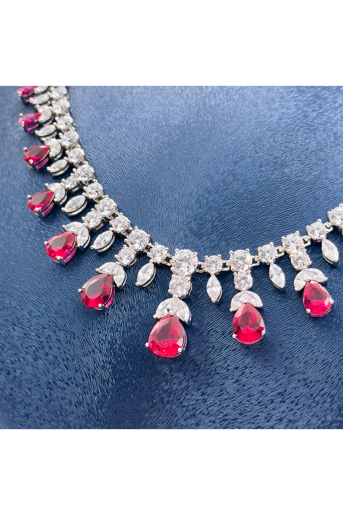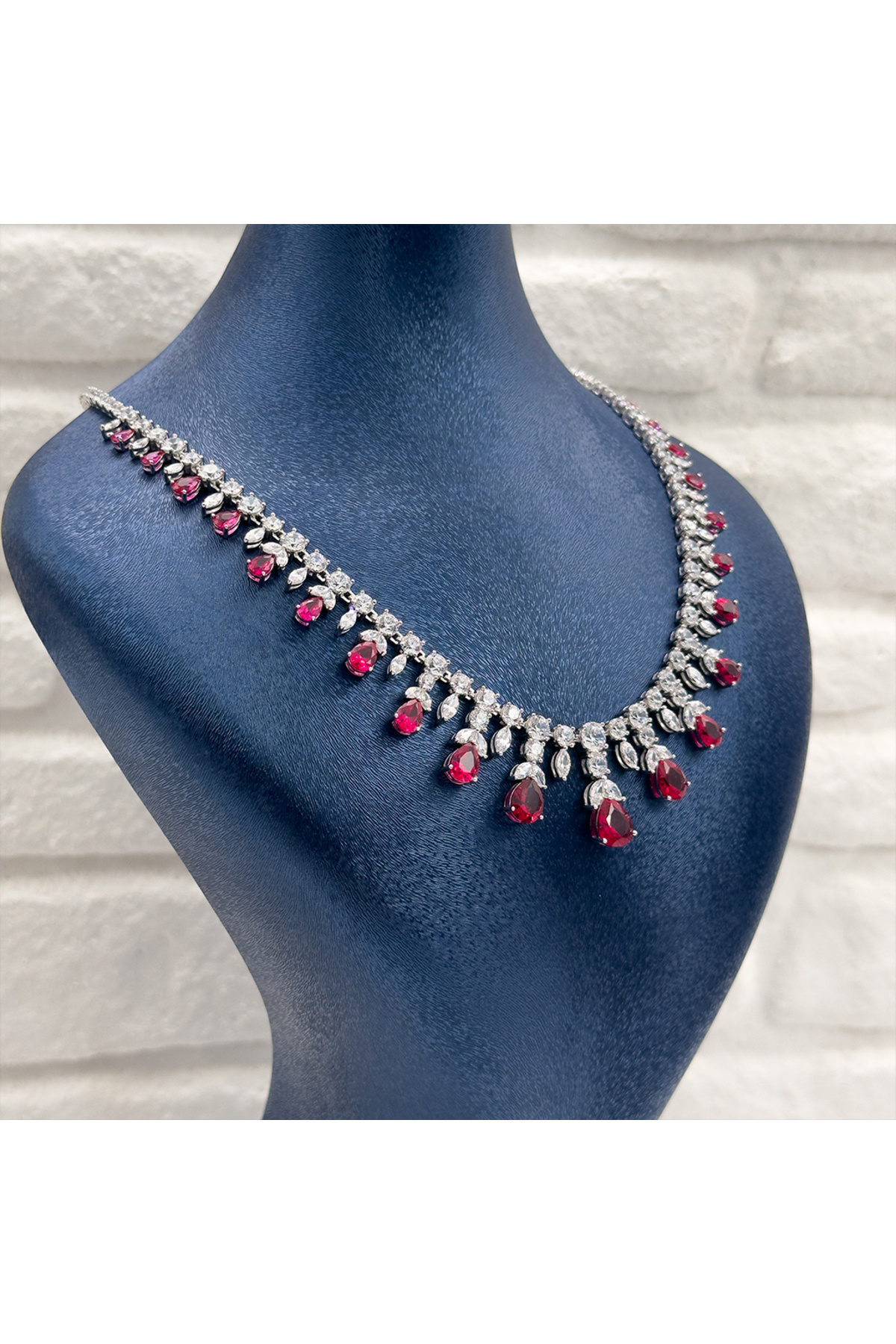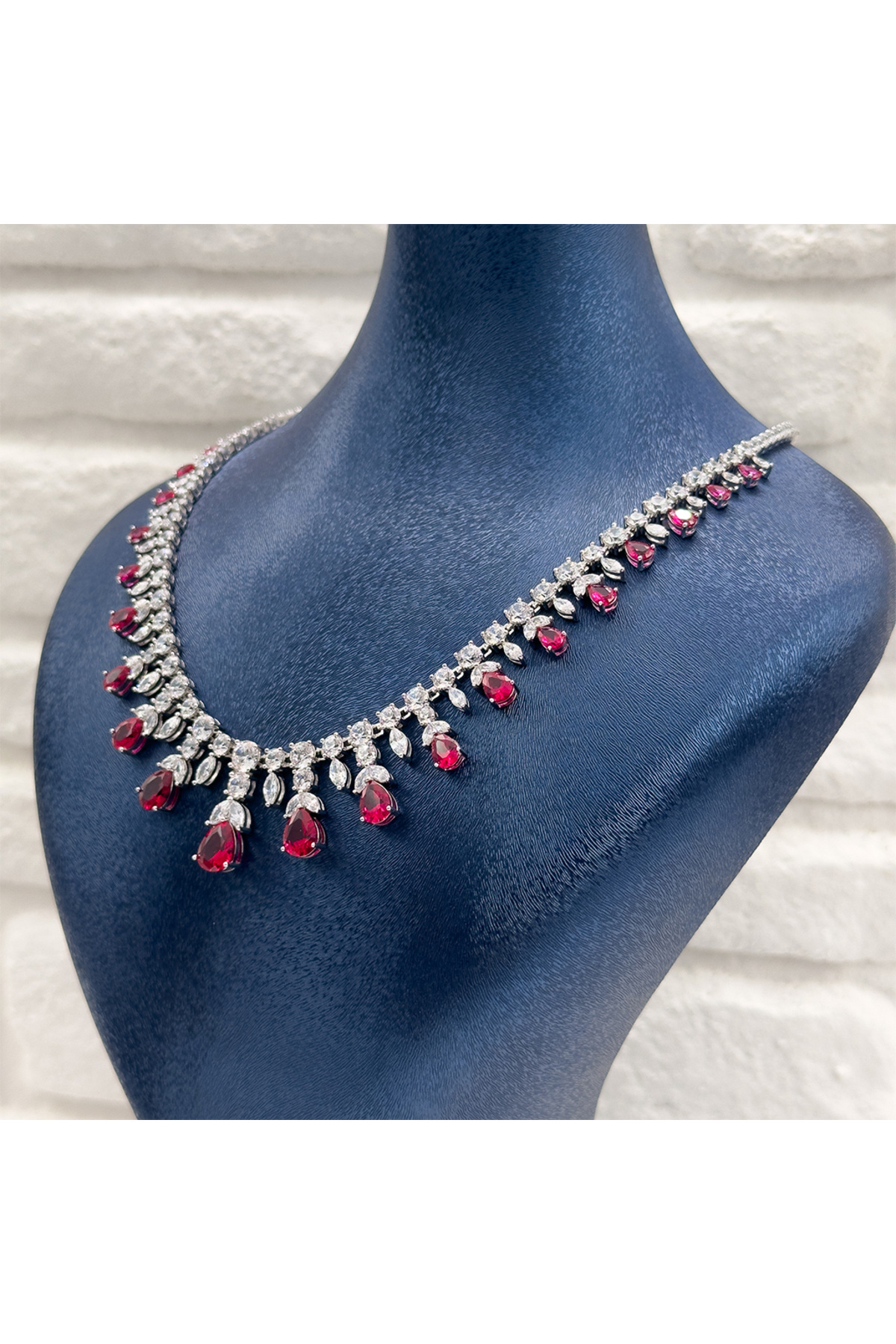 Pırlanta Montür Yakut Taşlı Gümüş Gerdanlık Pırlanta Montür Yakut Taşlı Gümüş Gerdanlık LVRKLY64 45 cm