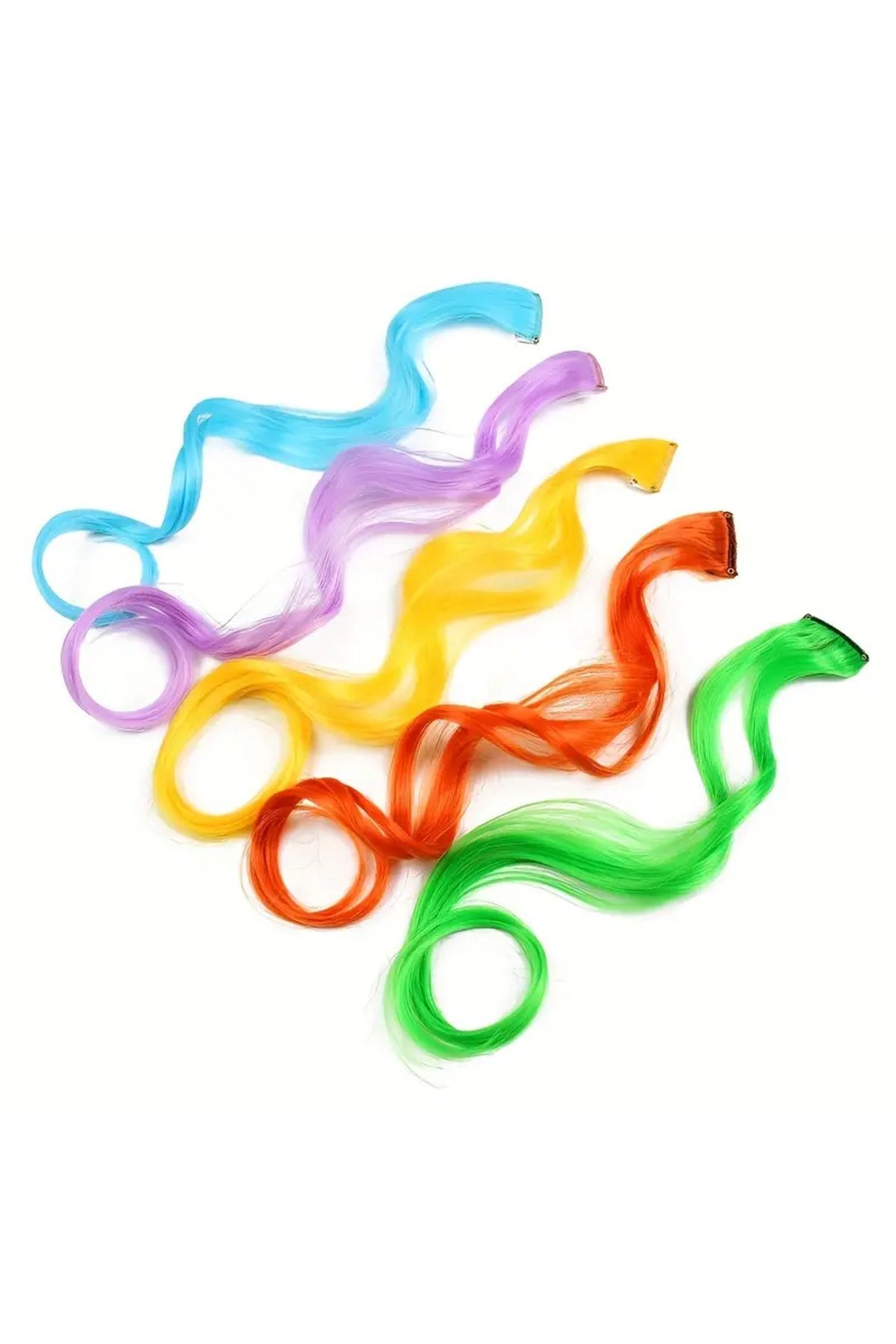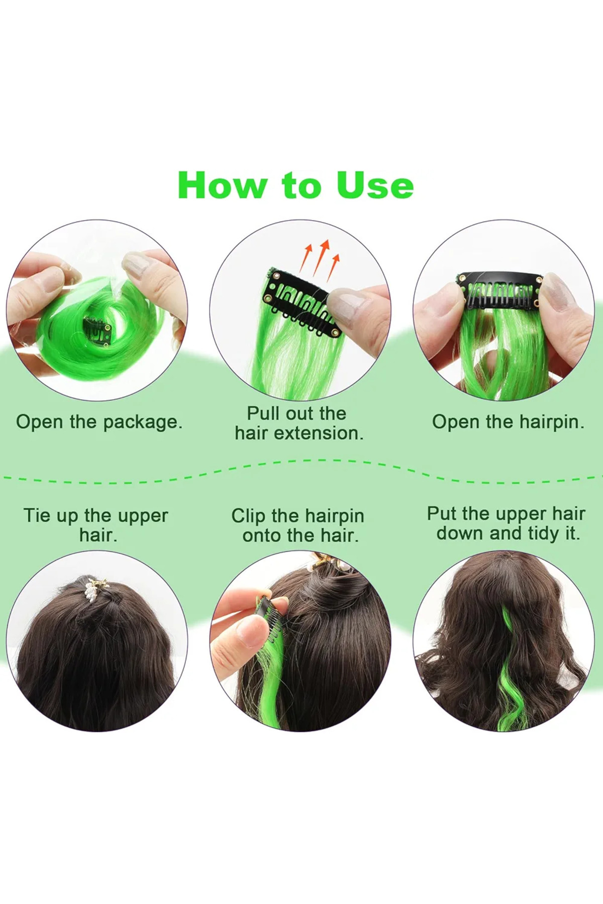 Neon Yeşil Dalgalı Çıtçıtlı Saç Yan Postiş - Tarz Görünüm