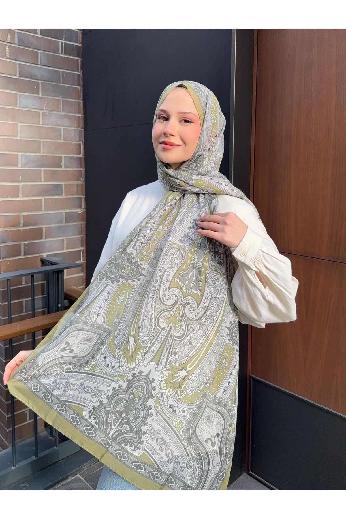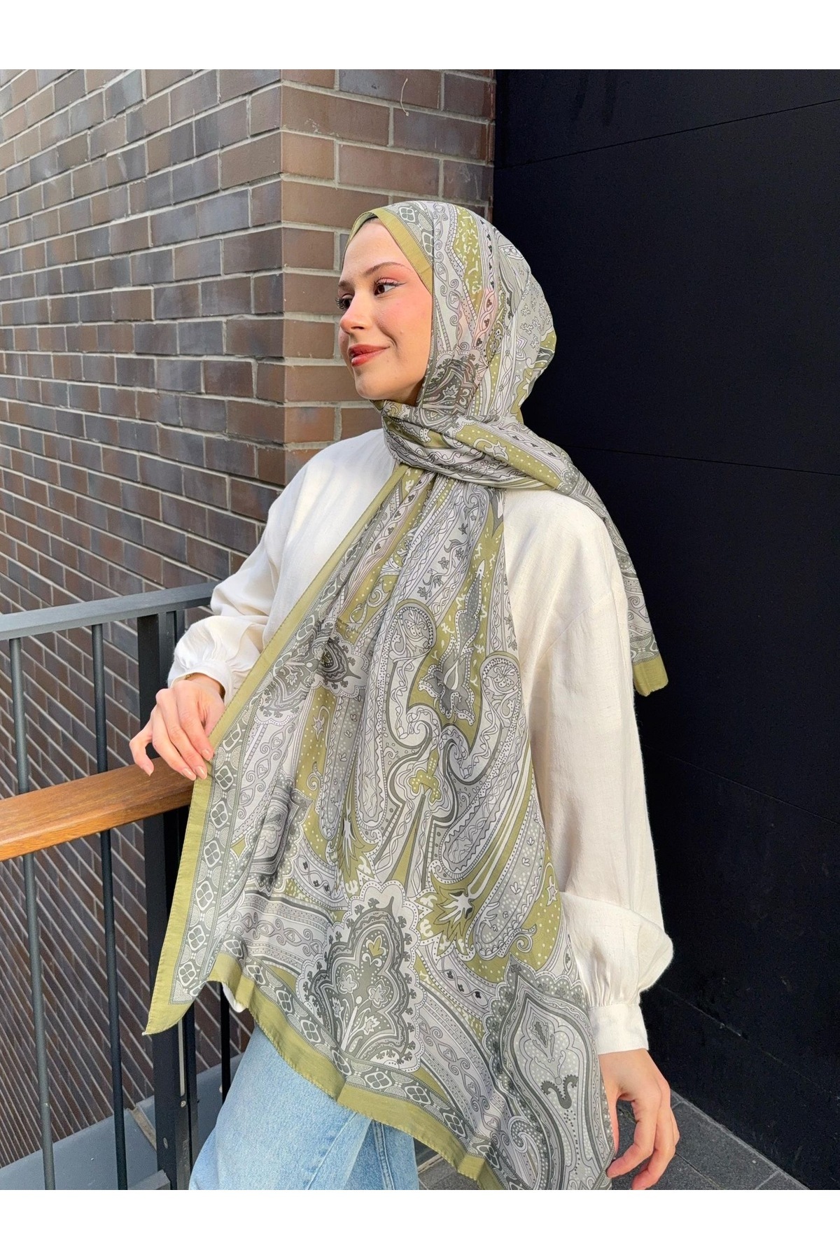 Retro Desen Etnik Pamuk Soft Şal. Yağ yeşili Retro Desen Etnik Pamuk Soft Şal. Yağ yeşili minel14 75 x 180