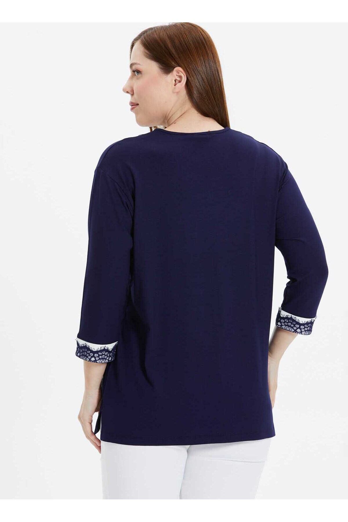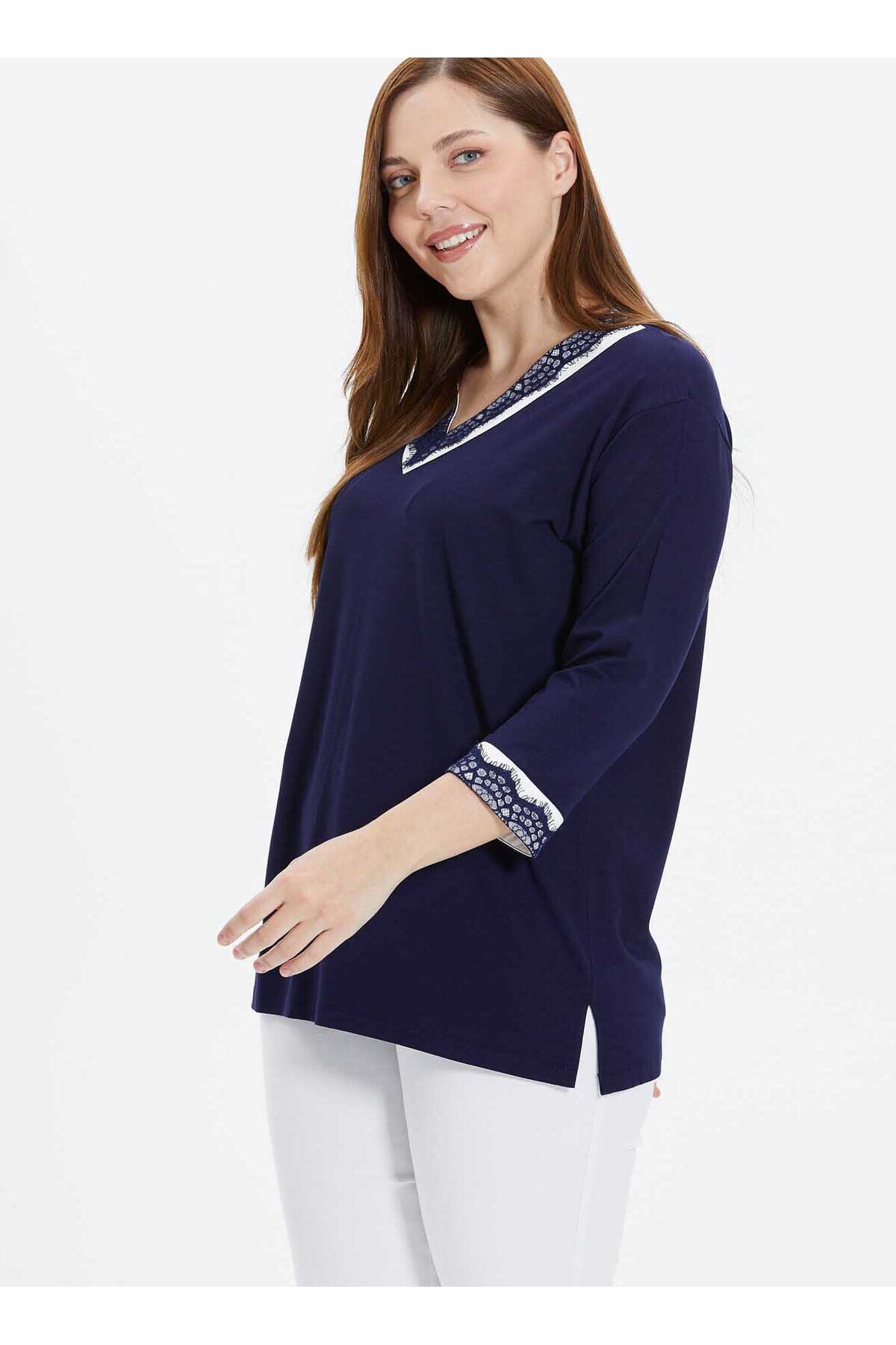 V Yaka Dantel Lacivert Kadın Bluz 25YSL8074-BB V Yaka Dantel Lacivert Kadın Bluz 25YSL8074-BB 5003270480 50