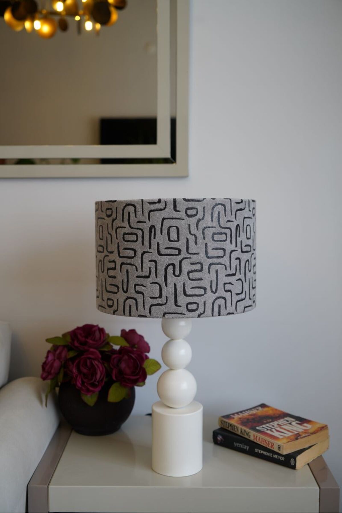 Özel Krem Ayaklı Kadife Kumaş Silindir Labirent Desenli Dekoratif Abajur Yatak Odası Salon Özel Krem Ayaklı Kadife Kumaş Silindir Labirent Desenli Dekoratif Abajur Yatak Odası Salon 3topkareayaksilindirkadifeabj تک سایز