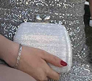 Kadın Gümüş Çizgili Kalp Detay Omuz Askılı Abiye Çanta Kadın Gümüş Çizgili Kalp Detay Omuz Askılı Abiye Çanta AA0723 تک سایز