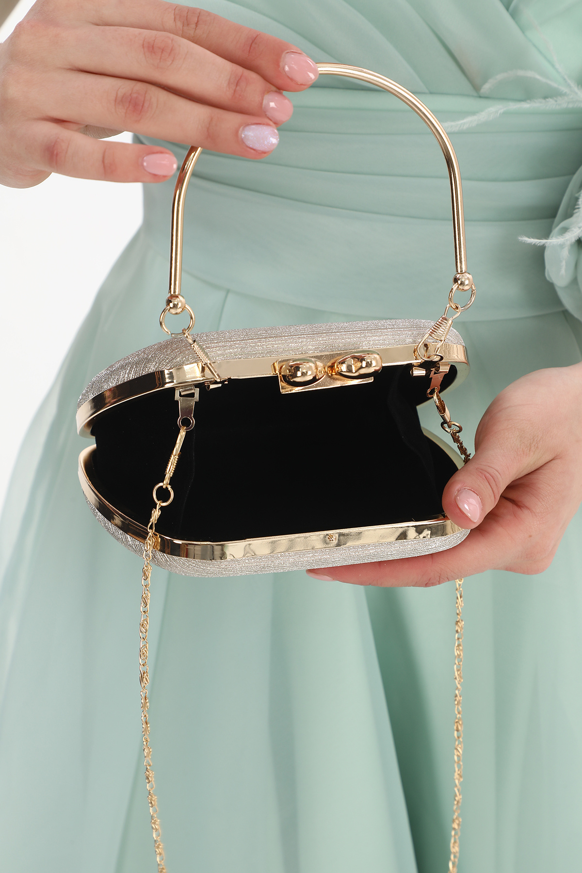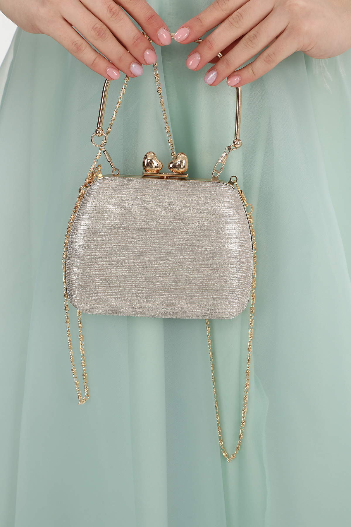 Kadın Gold Çizgili Kalp Detay Omuz Askılı Abiye Çanta Kadın Gold Çizgili Kalp Detay Omuz Askılı Abiye Çanta AA0723 تک سایز