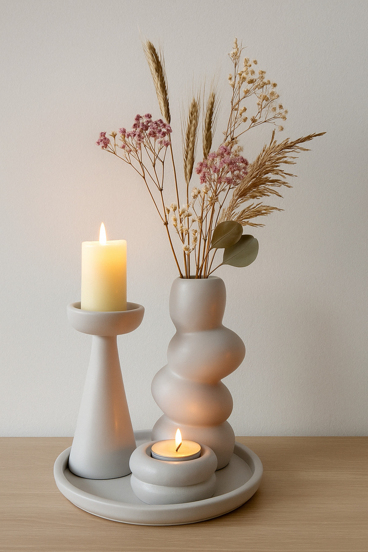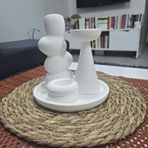 4’lü Dekoratif Set – Beyaz Taş Vazo, Mumluk ve Tepsi Takımı | Modern El Yapımı Ev Aksesuarı 4’lü Dekoratif Set – Beyaz Taş Vazo, Mumluk ve Tepsi Takımı | Modern El Yapımı Ev Aksesuarı 0104-25 تک سایز
