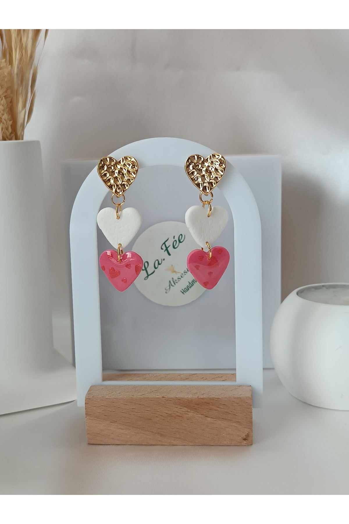 Pembe Beyaz Kalp Kadın Küpe Polimer Kil Küpe Pembe Beyaz Kalp Kadın Küpe Polimer Kil Küpe lafee11160 تک سایز