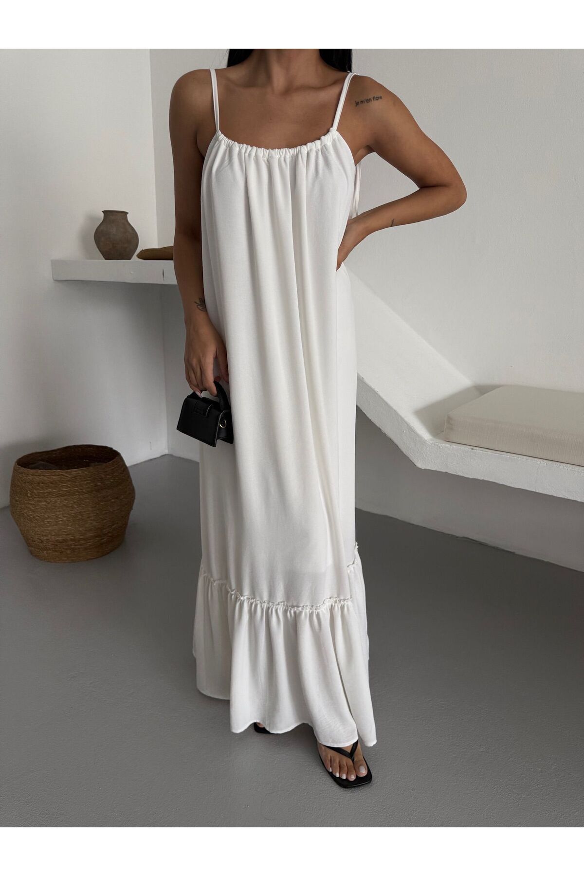 Büzgülü Askılı Salaş UzunElbise Büzgülü Askılı Salaş UzunElbise CT459983 L