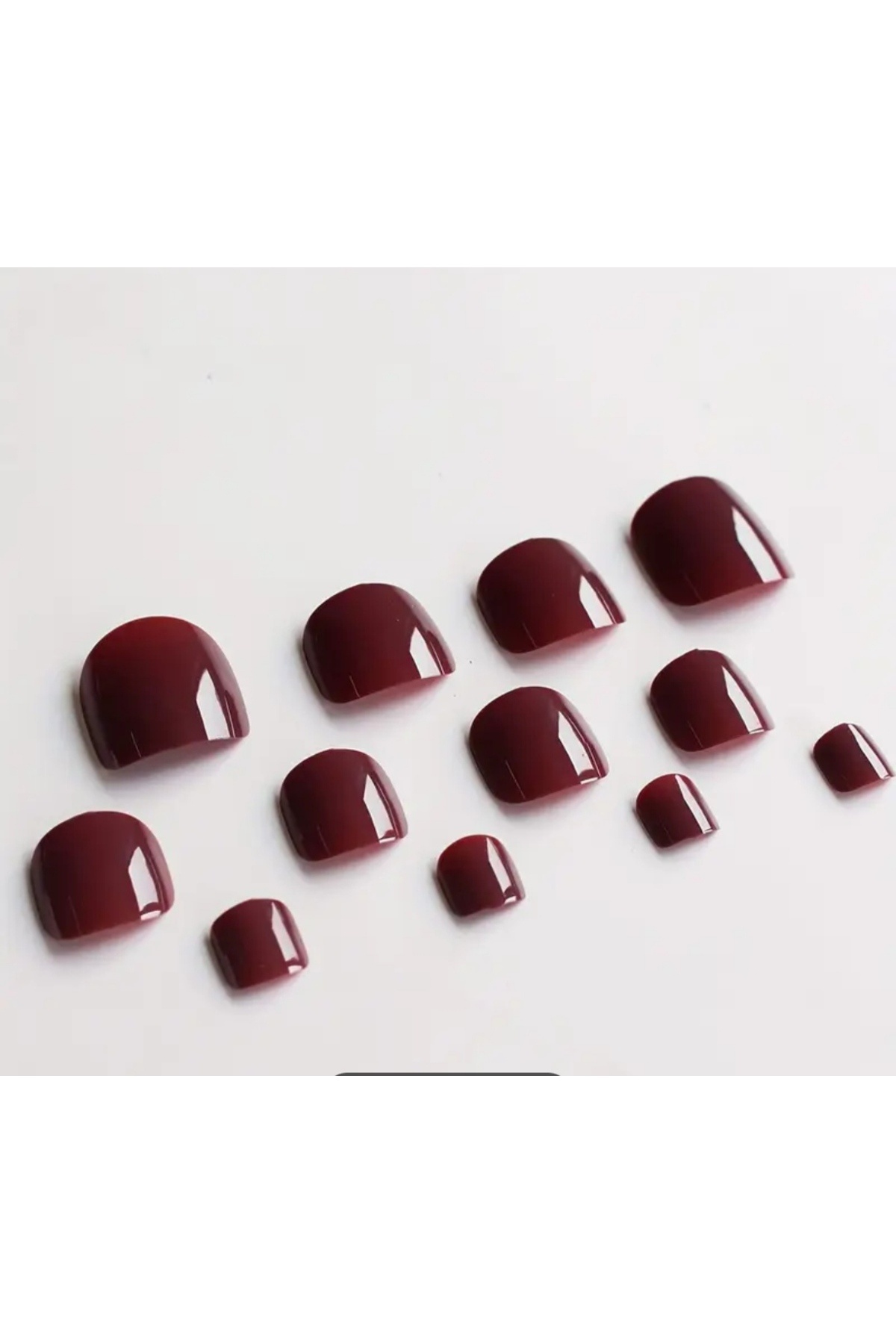 24'lü Kare Model Bordo Takma Ayak Tırnağı Protez Tırnak Seti - Jel yapışkan Hediyeli 24'lü Kare Model Bordo Takma Ayak Tırnağı Protez Tırnak Seti - Jel yapışkan Hediyeli 00000190 تک سایز