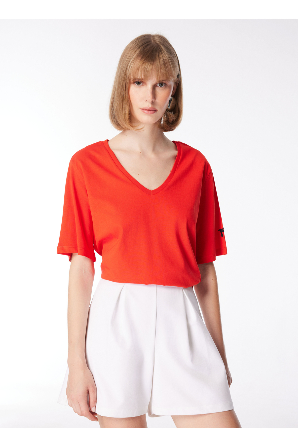 Bisiklet Yaka Nakışlı Kırık Beyaz Kadın T-Shirt F5SL-TST0086 Bisiklet Yaka Nakışlı Kırık Beyaz Kadın T-Shirt F5SL-TST0086 XL