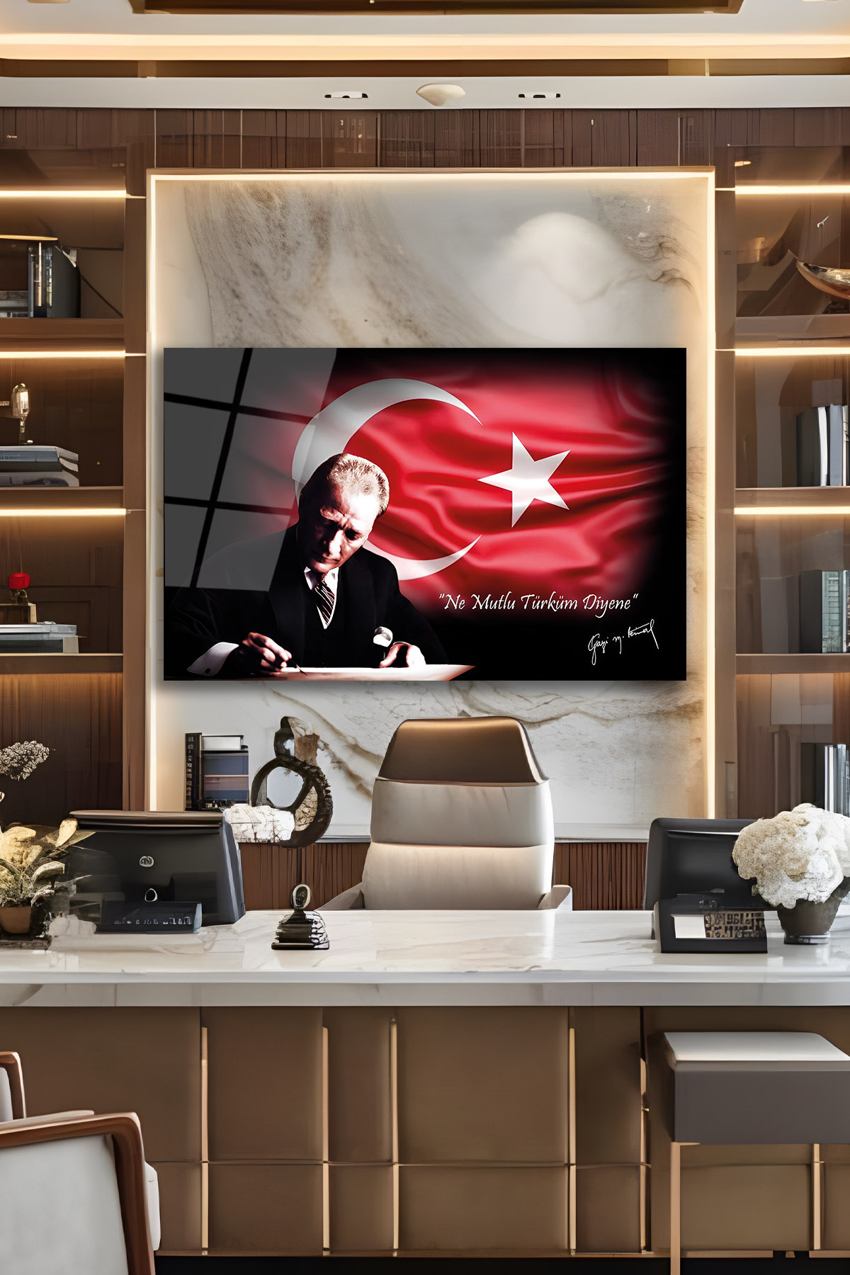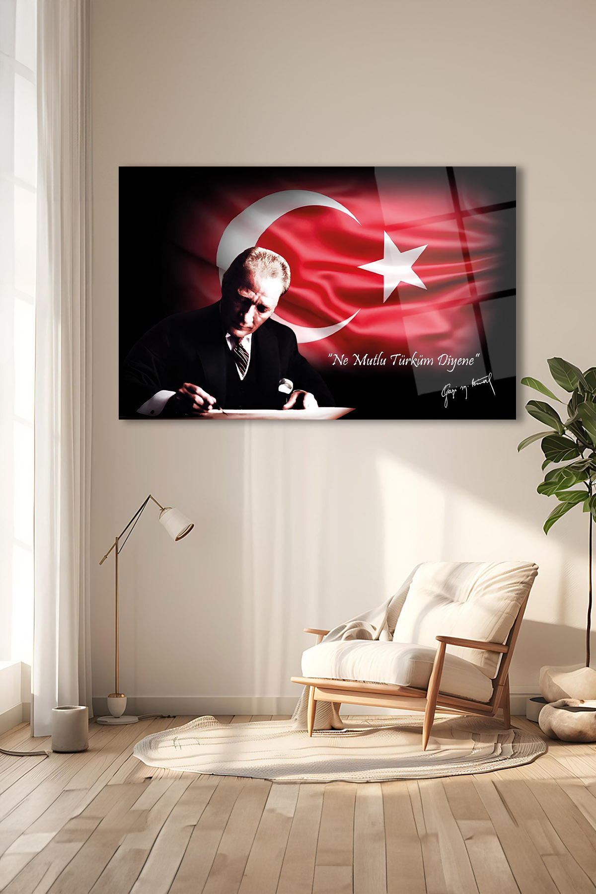 Atatürk Portresi ve Türk Bayrağı Ne Mutlu Türküm Diyene Cam Tablo İş Ofis Makam Odası Hediyelik Atatürk Portresi ve Türk Bayrağı Ne Mutlu Türküm Diyene Cam Tablo İş Ofis Makam Odası Hediyelik DS70-150208DS 150 x 95