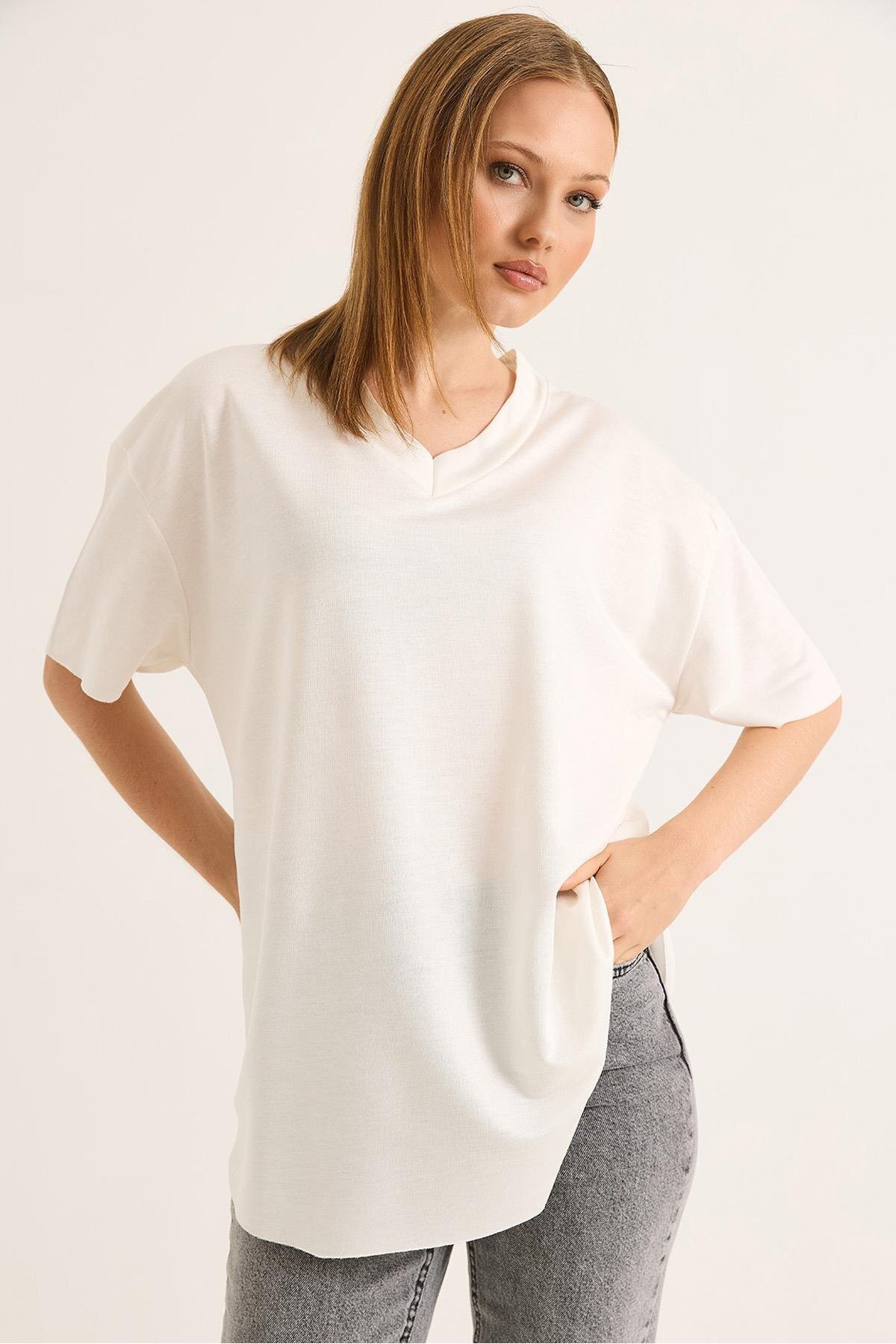 V Yaka Arkası Uzun Basic Tshirt Beyaz V Yaka Arkası Uzun Basic Tshirt Beyaz 250574TSH XL