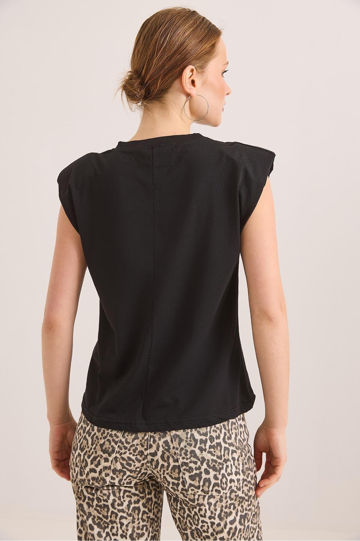 Omuz Vatkalı Şık Aksesuar Detaylı Pamuk Örme Tshirt Siyah Omuz Vatkalı Şık Aksesuar Detaylı Pamuk Örme Tshirt Siyah 250743BLZ XL