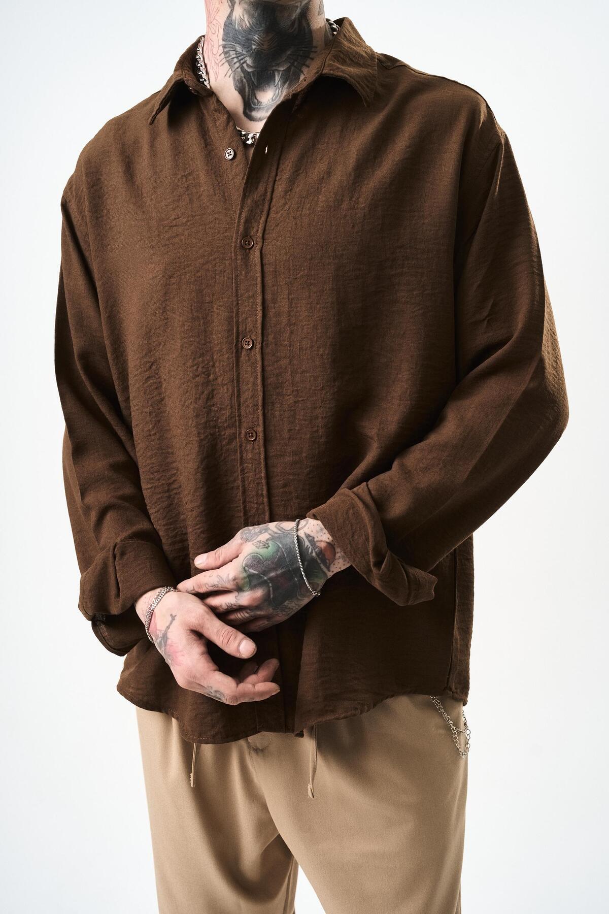 Erkek Oversize Krinkıl Gömlek Kahve Erkek Oversize Krinkıl Gömlek Kahve 5625169 XL