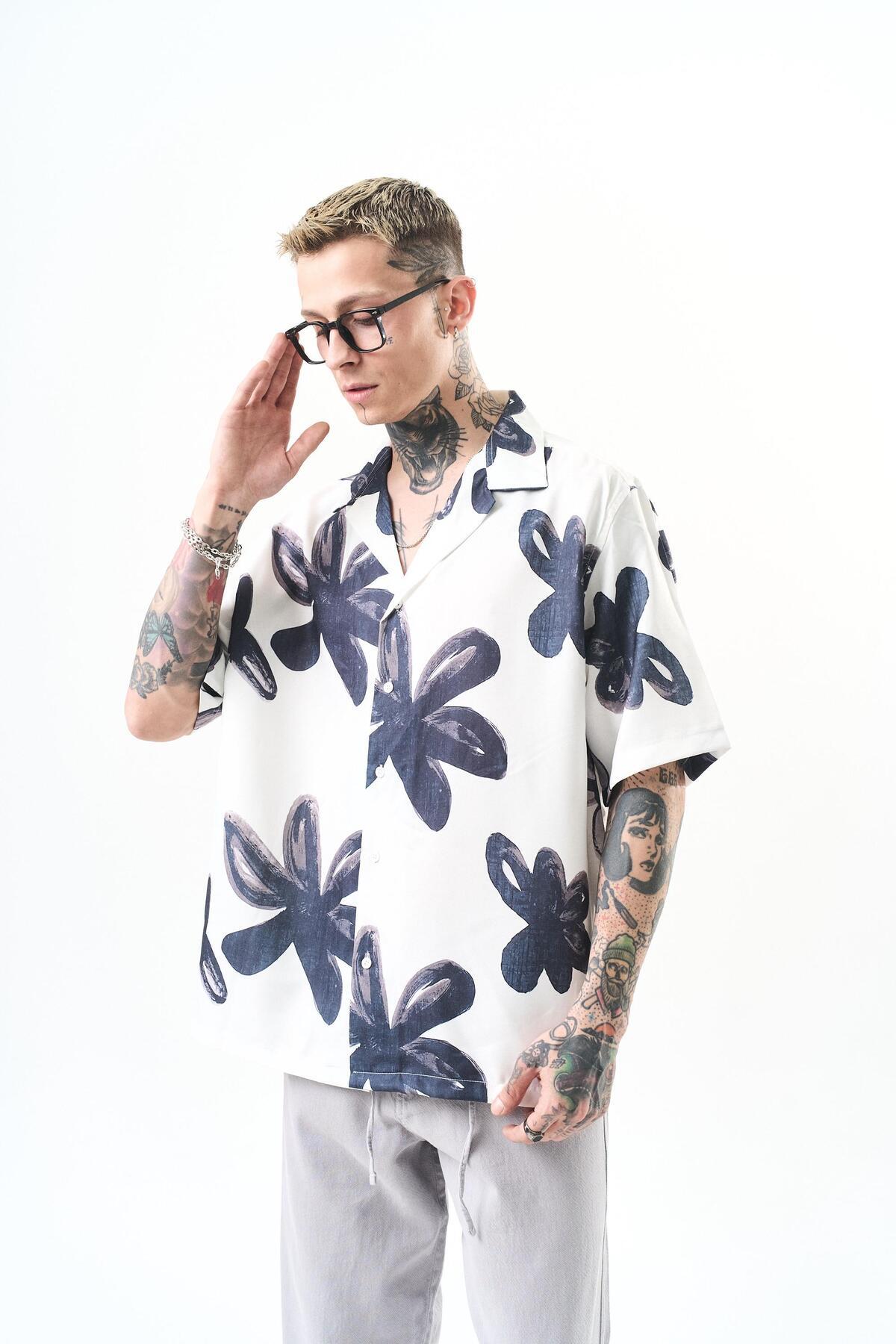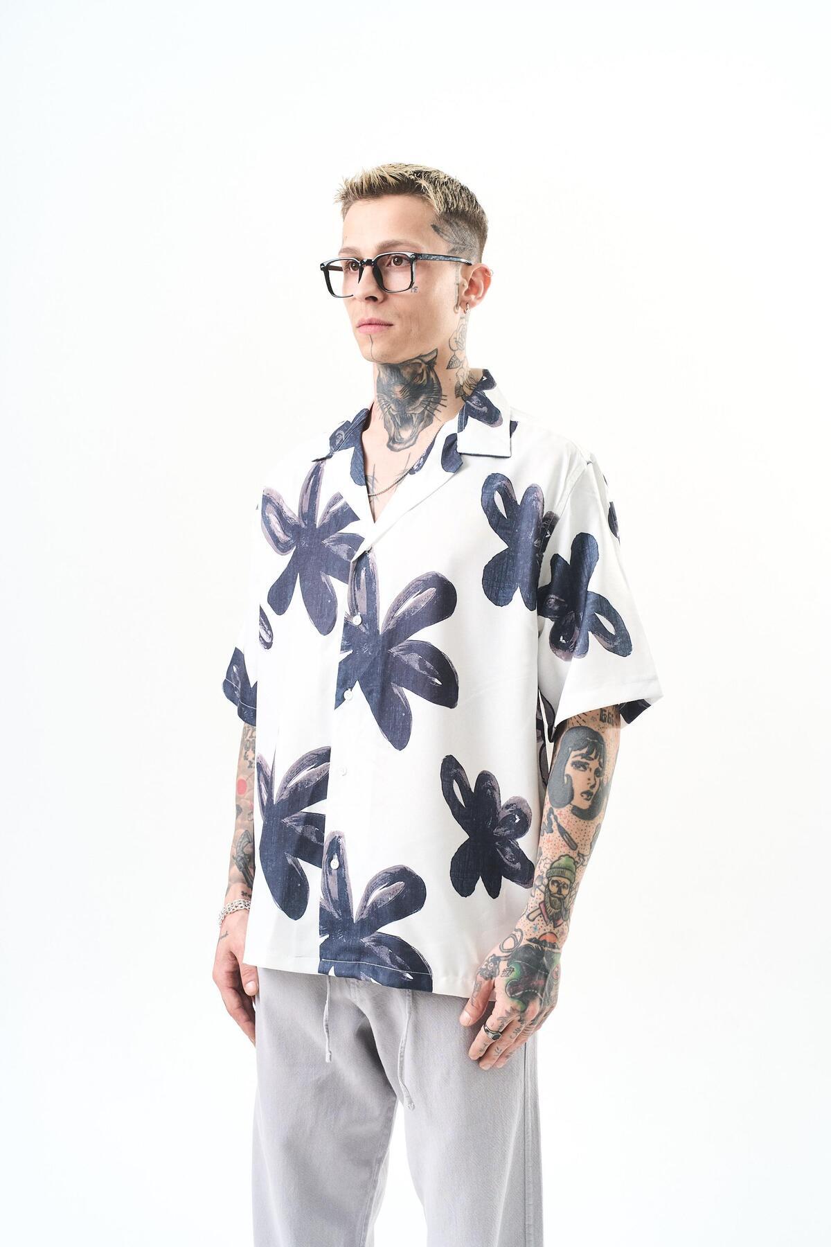 Erkek Flow Pattern Baskılı Oversize Gömlek Beyaz Erkek Flow Pattern Baskılı Oversize Gömlek Beyaz 5625221 XL