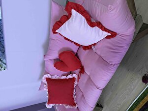 Fırfırlı Pembe-Kırmızı Volanlı Yastık Kılıfı Fırfırlı Pembe-Kırmızı Volanlı Yastık Kılıfı fırfır 45 x 45