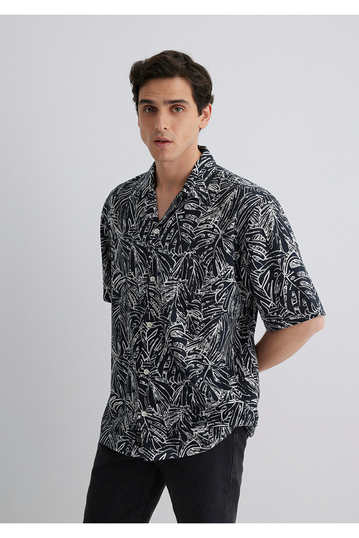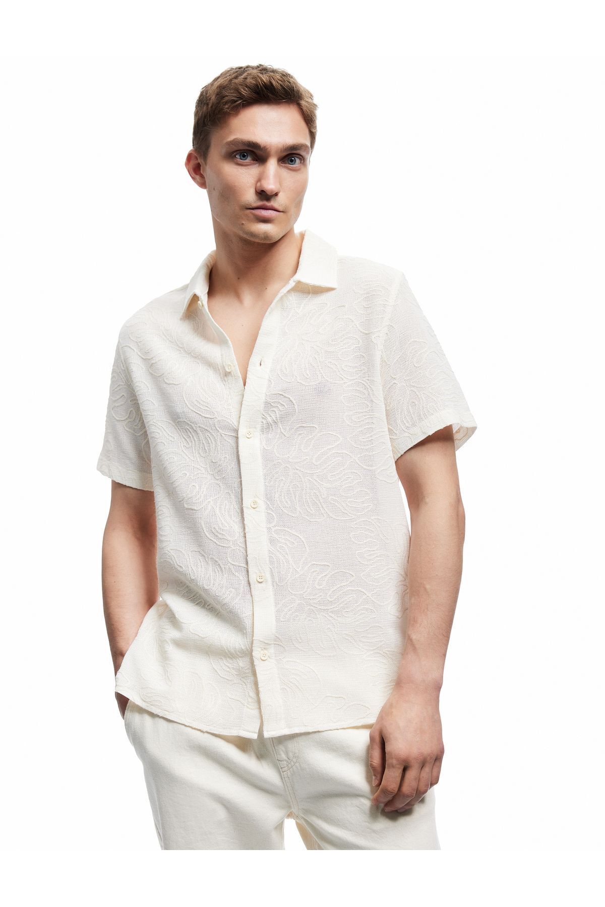 Klasik Yaka Pamuklu Regular Fit Palmiye İşlemeli Kısa Kollu Dokulu Gömlek Klasik Yaka Pamuklu Regular Fit Palmiye İşlemeli Kısa Kollu Dokulu Gömlek 5SAM60183HW XL