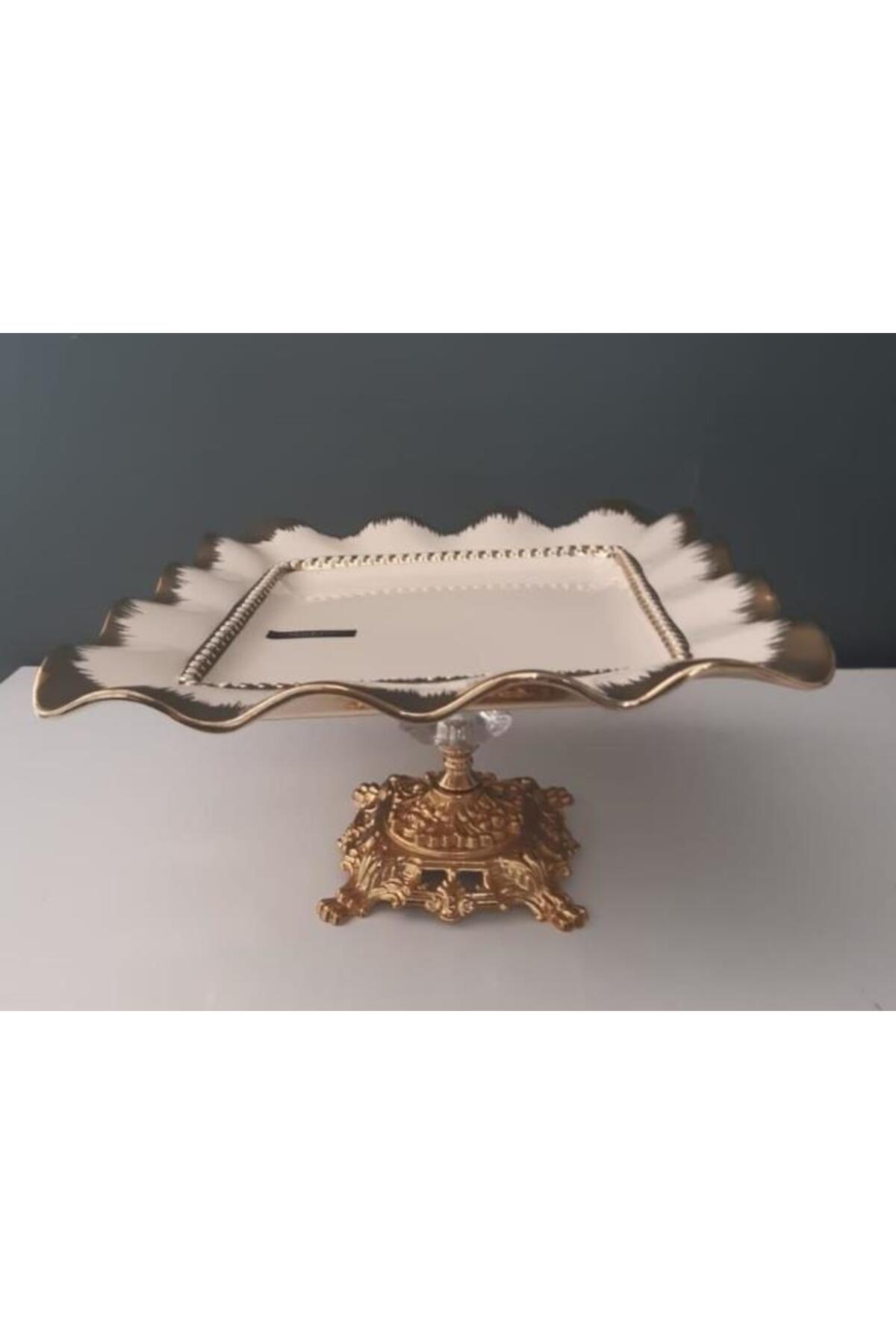 Servis Tabağı Ayaklı Yuvarlak Gold 33cm Servis Tabağı Ayaklı Yuvarlak Gold 33cm AYM-9927A تک سایز