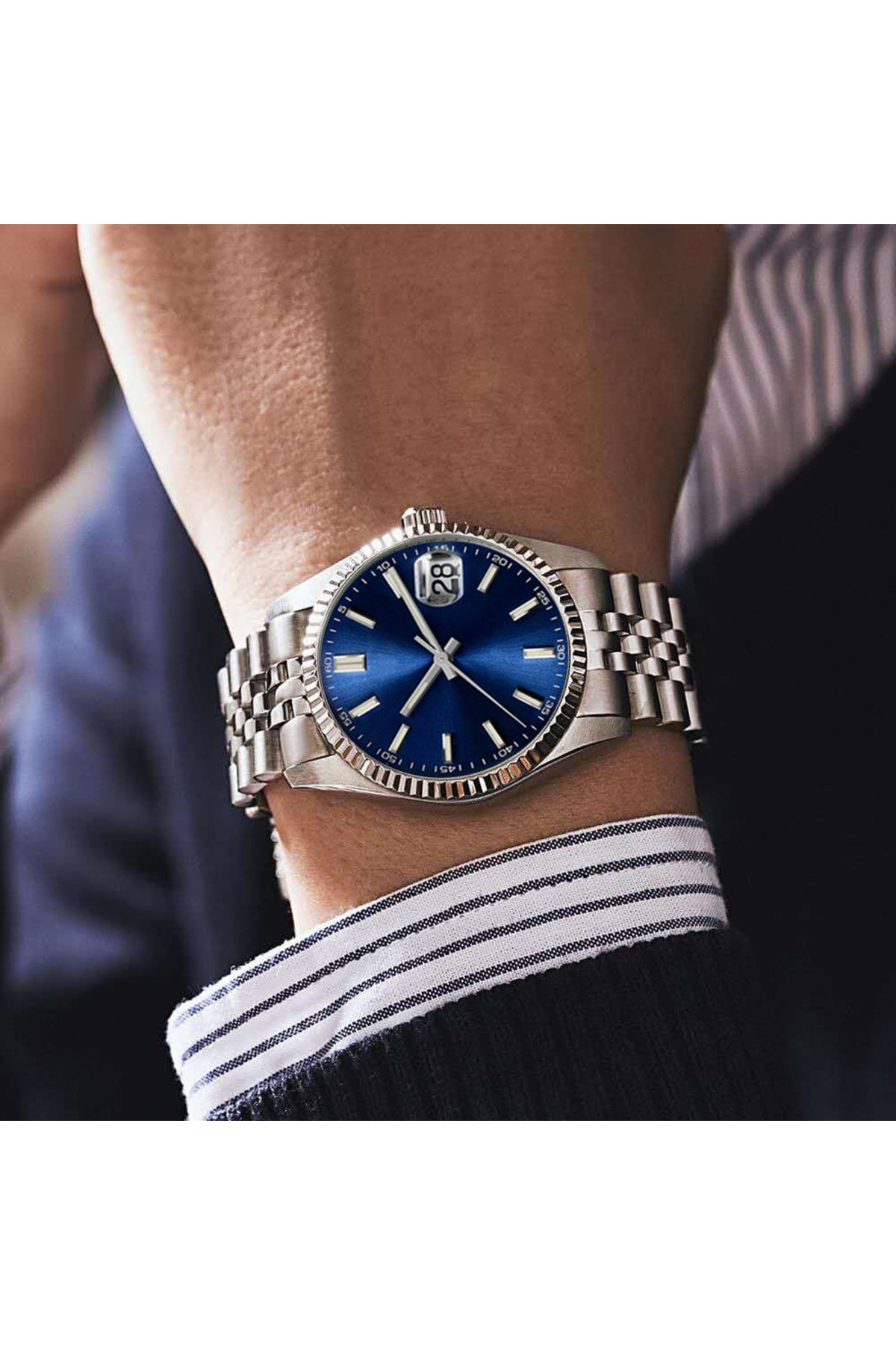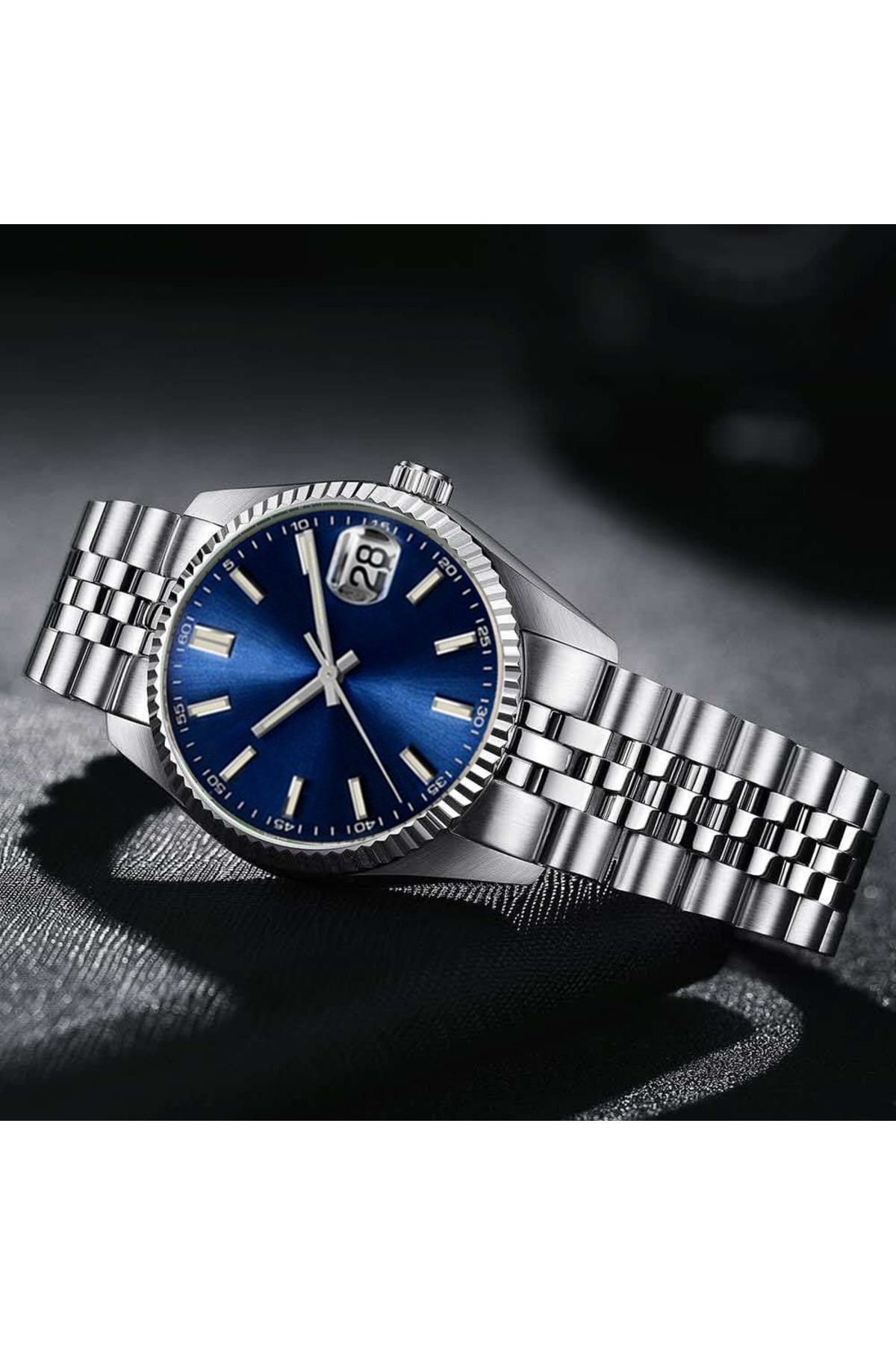 Erkek Gümüş Renk Mavi Kadran Takvimli Analog Kol Saati Erkek Gümüş Renk Mavi Kadran Takvimli Analog Kol Saati istlivyeni1 تک سایز