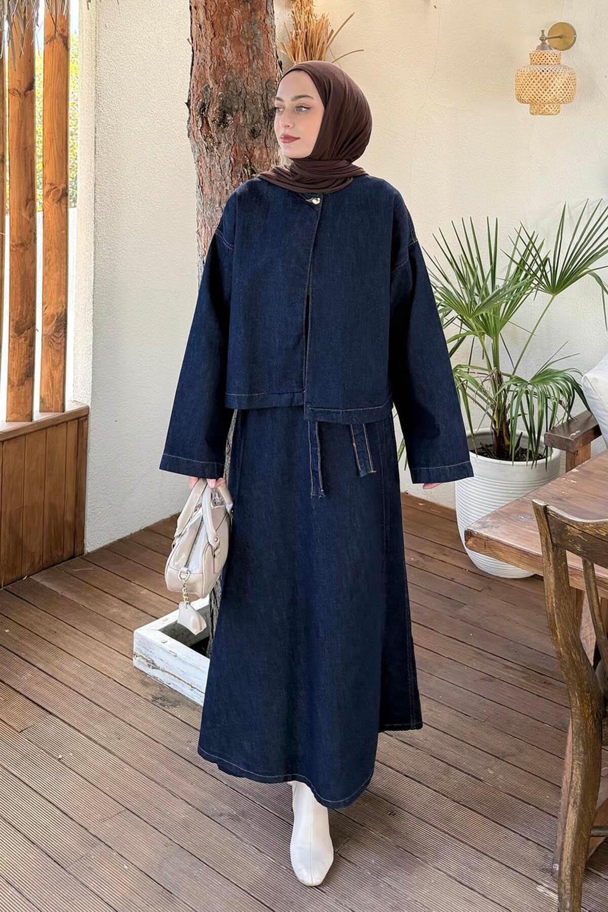 Tesettür Kadın Fiyonklu Etekli Kot Takım Tesettür Kadın Fiyonklu Etekli Kot Takım TF630 42
