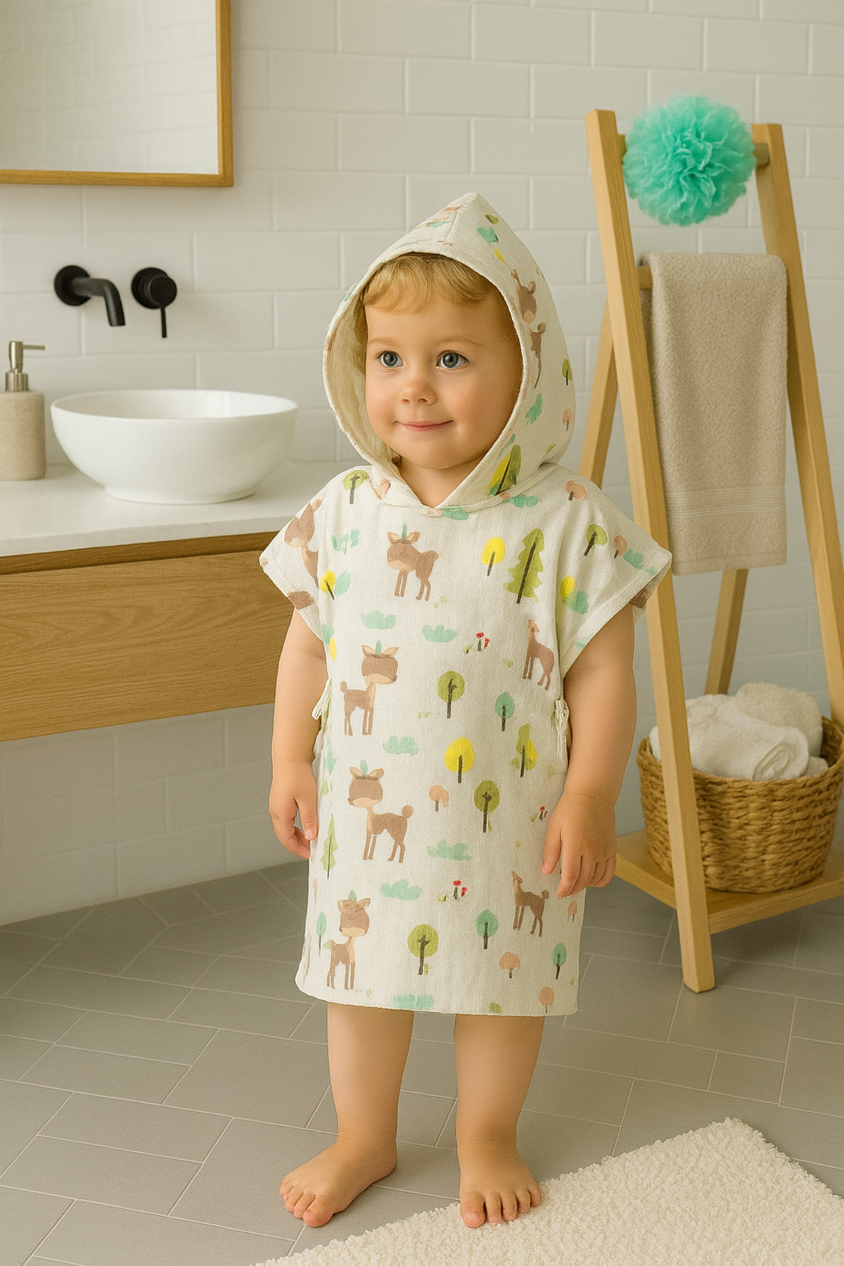Kapşonlu Müslin Panço %100 Pamuk Bebek / Çocuk Plaj Havlusu / Bornozu Kapşonlu Müslin Panço %100 Pamuk Bebek / Çocuk Plaj Havlusu / Bornozu PANCO 1-5 Yaş