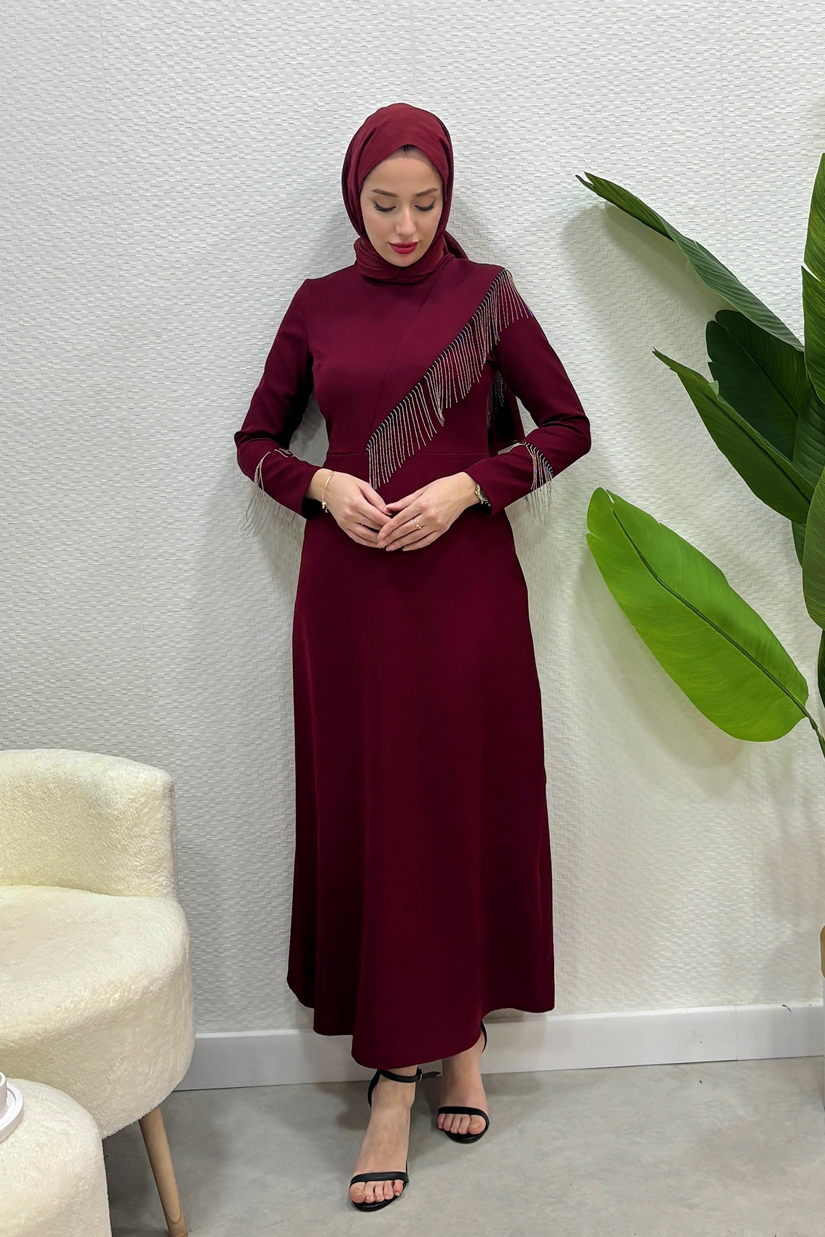 Kadın Krep Kumaş Zincirli Abiye-Bordo Kadın Krep Kumaş Zincirli Abiye-Bordo CRN20 40