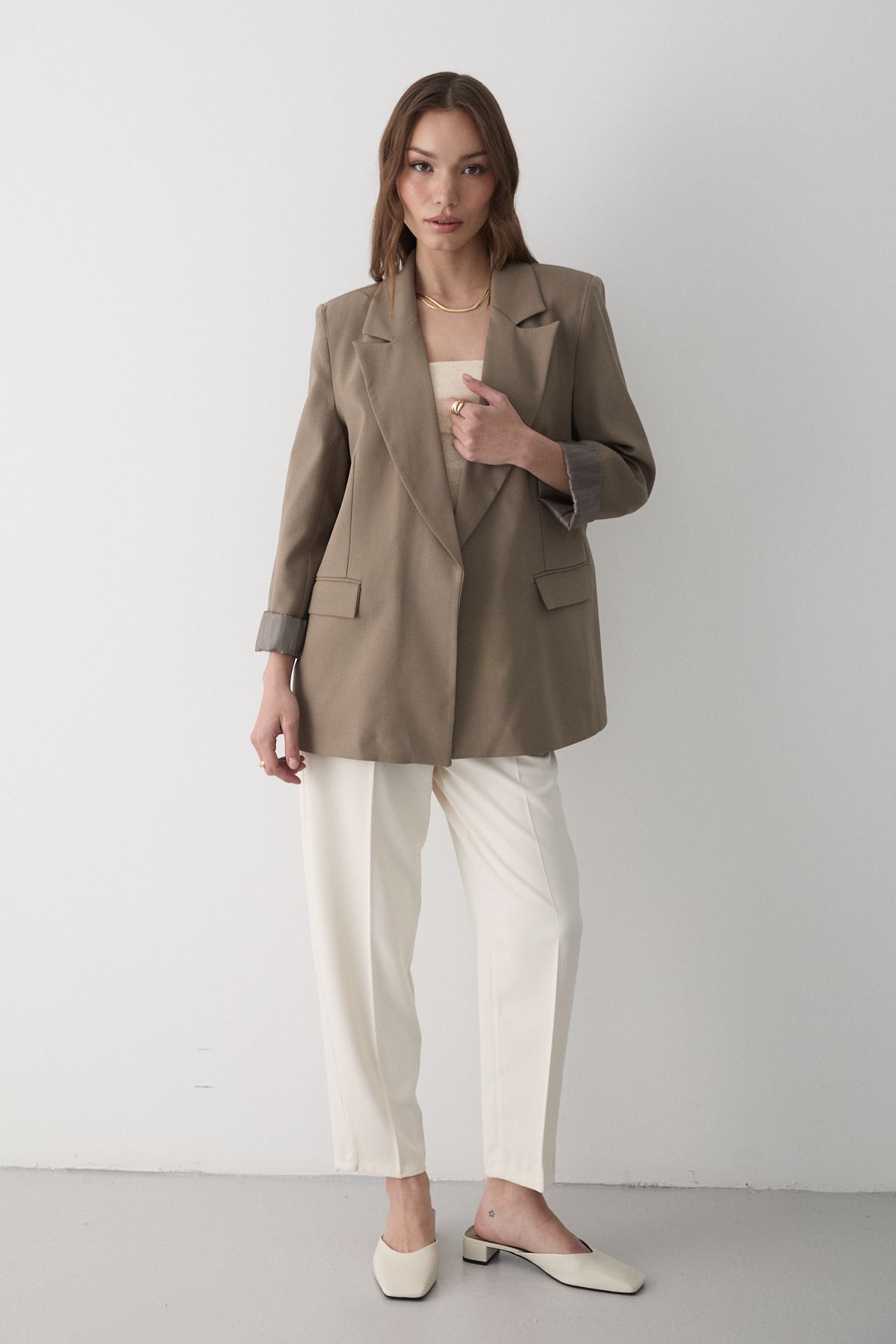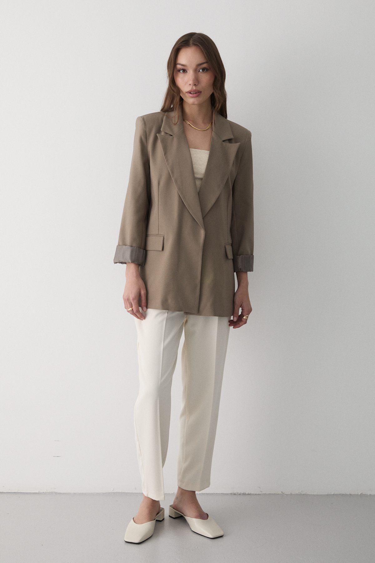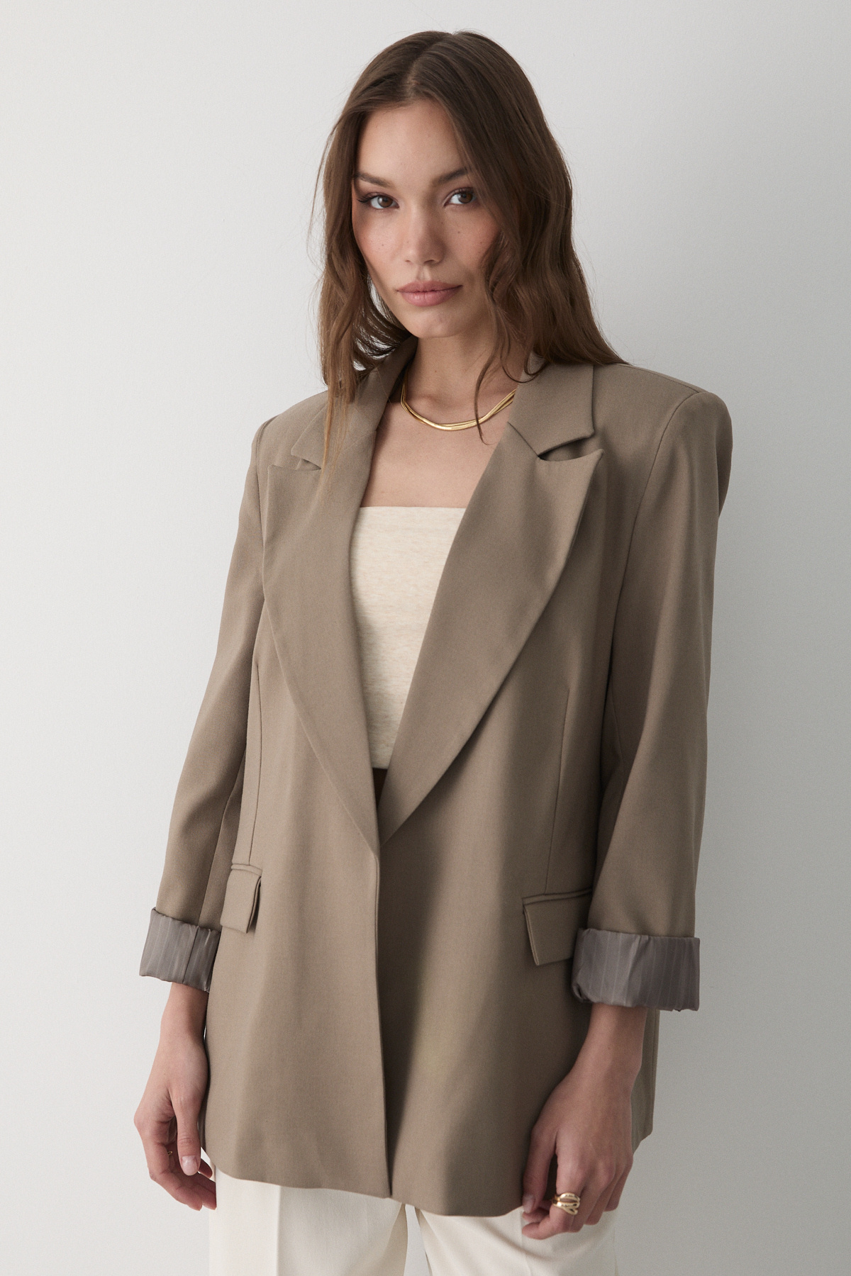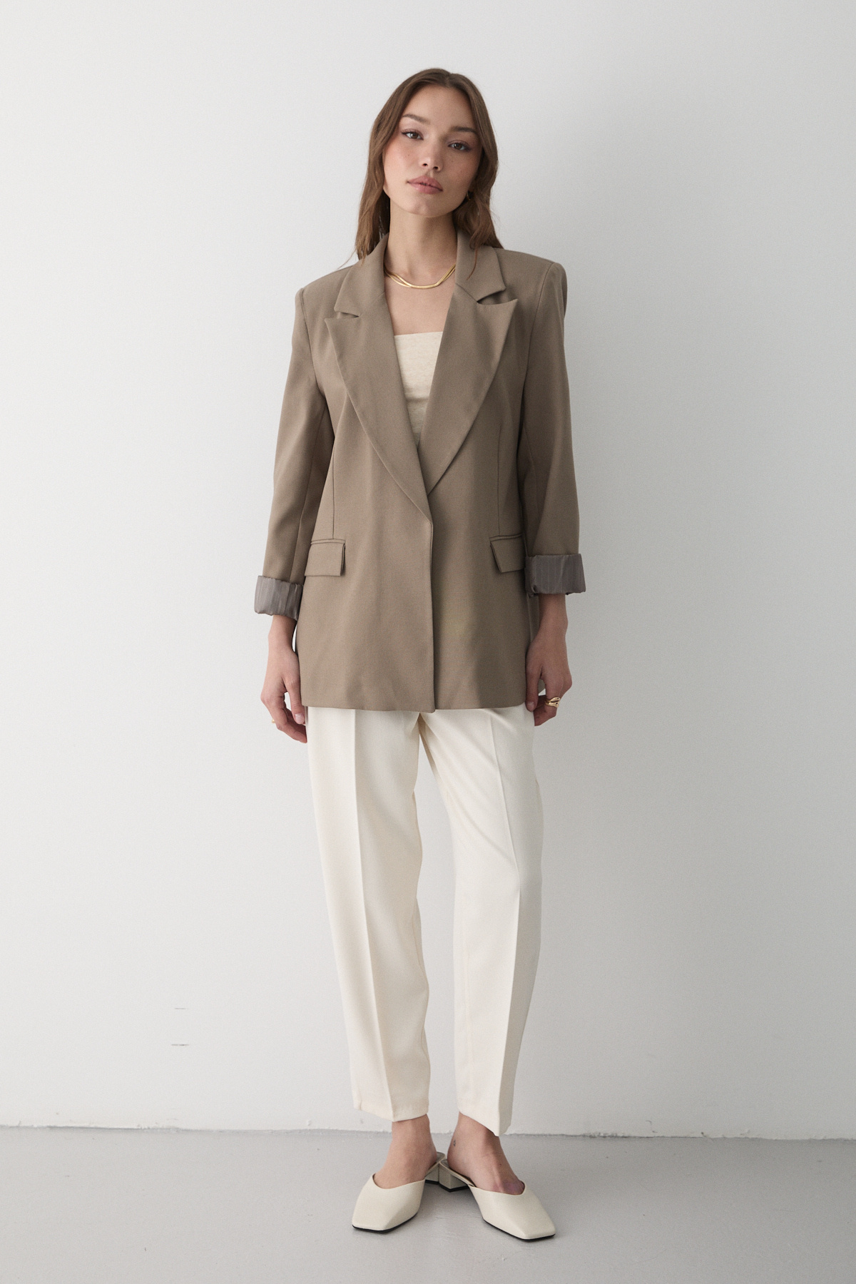 Kadın Haki Çizgili Içi Astarlı Kol Detaylı Blazer Ceket Kadın Haki Çizgili Içi Astarlı Kol Detaylı Blazer Ceket 7479 XL