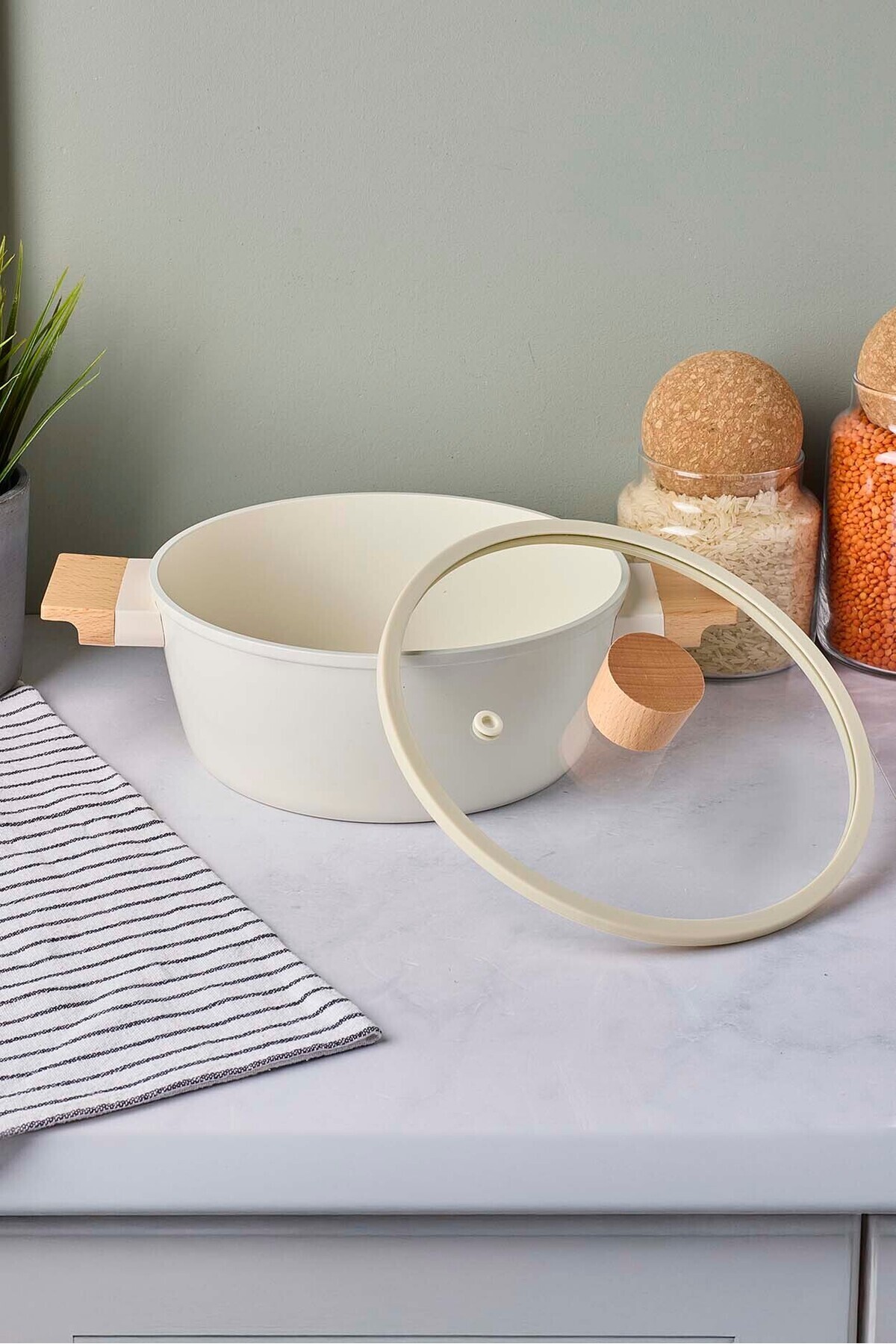 CookWood Beige İndüksiyon Tabanlı Ahşap Kulplu Kapaklı Seramik Derin Tencere 20 cm CookWood Beige İndüksiyon Tabanlı Ahşap Kulplu Kapaklı Seramik Derin Tencere 20 cm 18089 تک سایز