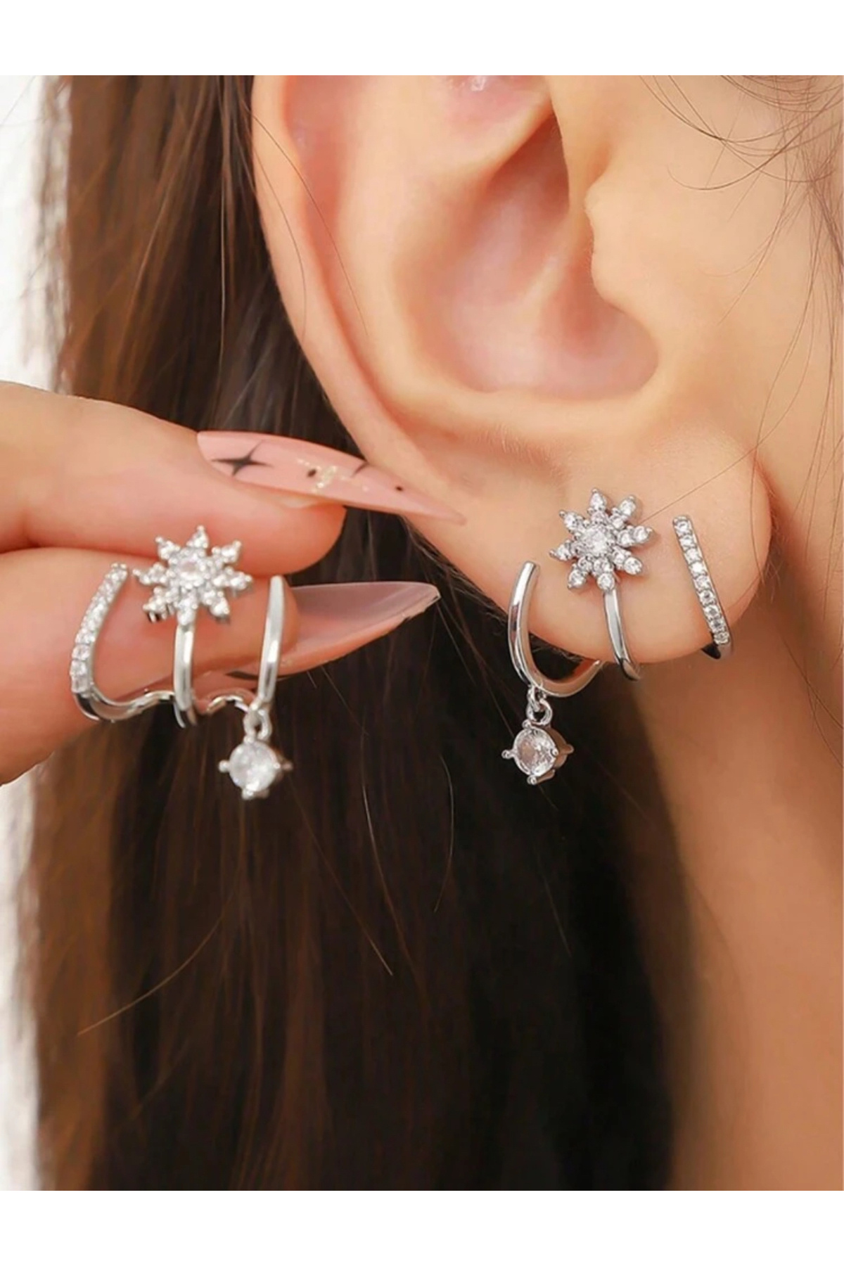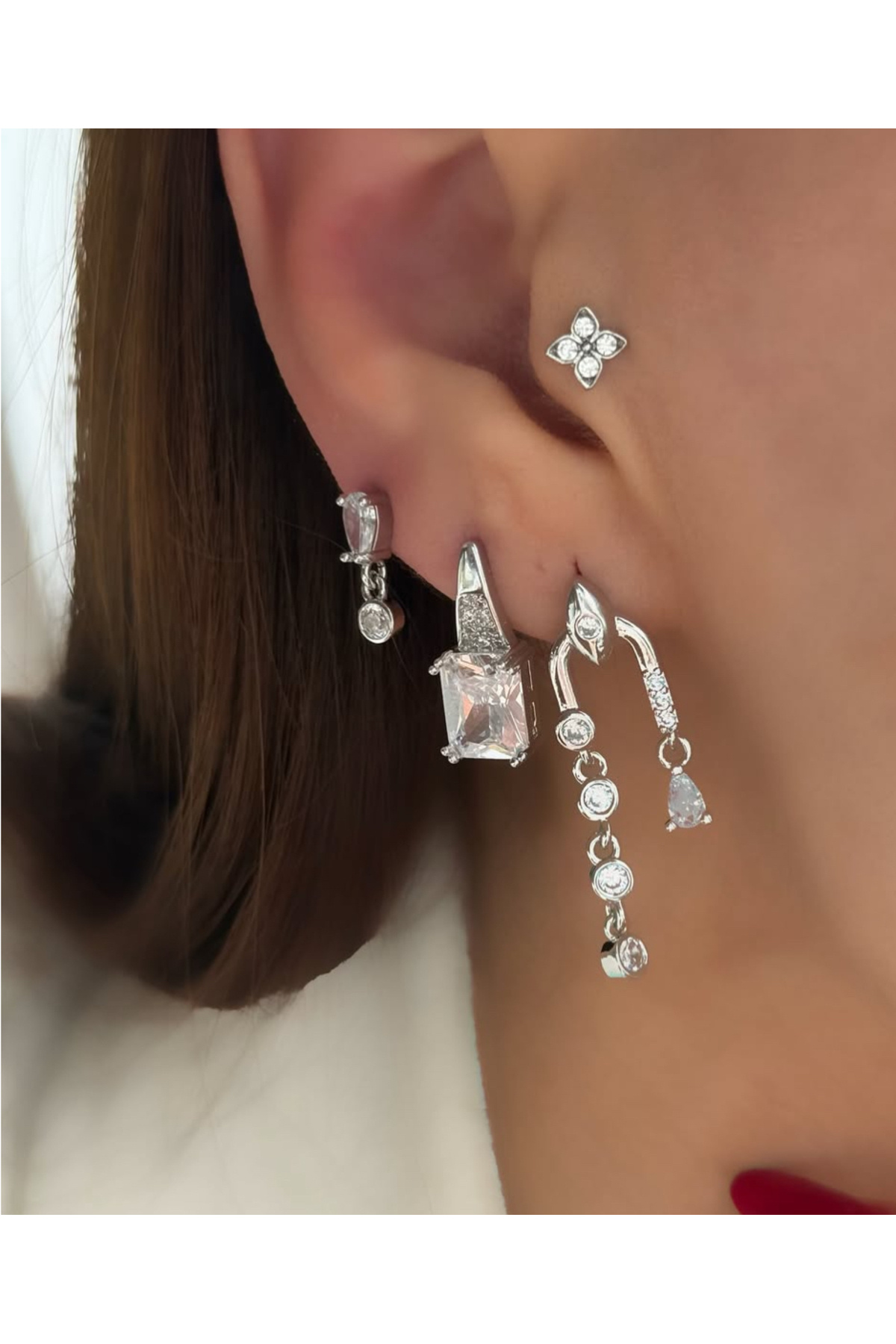 Çelik ysx vip gümüş renk zirkon taşlı sallantılı baget kesim taş 3’lü set küpe Çelik ysx vip gümüş renk zirkon taşlı sallantılı baget kesim taş 3’lü set küpe dueo865 تک سایز