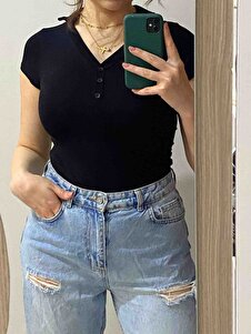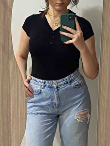 Apaj Yaka Kısa Kollu Çıtçıtlı Body Bluz Apaj Yaka Kısa Kollu Çıtçıtlı Body Bluz JJ9331 2XL