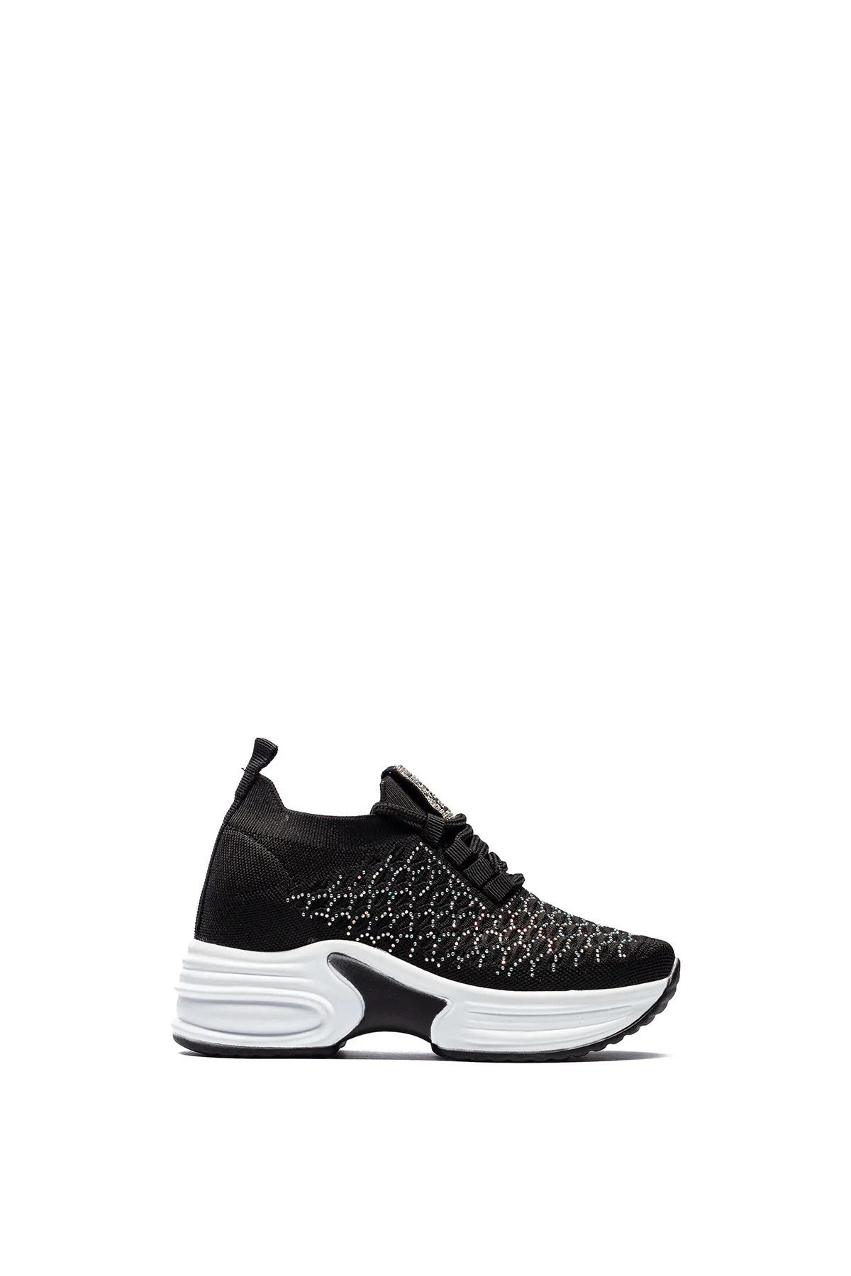 KADIN SİYAH GİZLİ TOPUK TAŞLI YÜKSEK TABAN TRİKO SNEAKER AYAKKABI KADIN SİYAH GİZLİ TOPUK TAŞLI YÜKSEK TABAN TRİKO SNEAKER AYAKKABI MCDARK5007 40