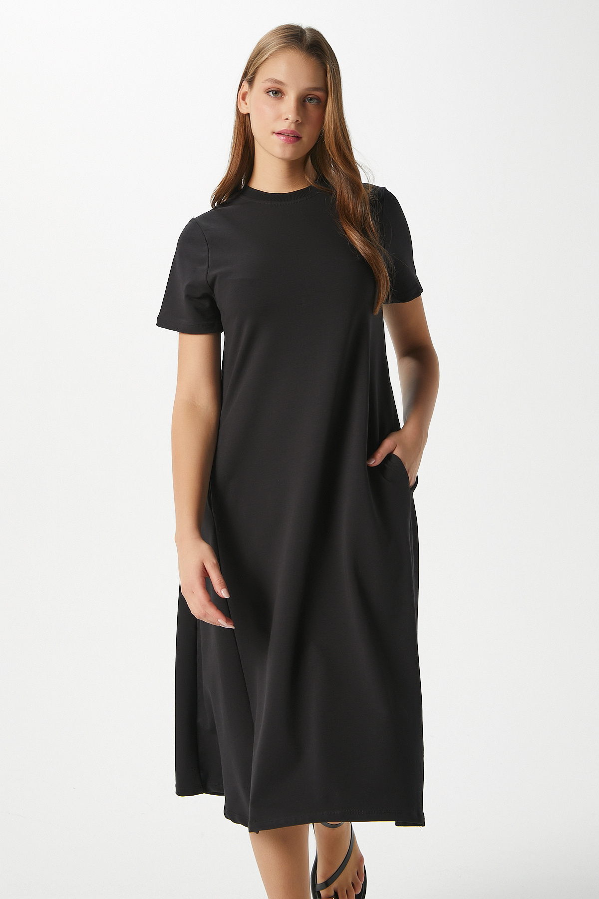 Kadın Hanna Cepli Çan Kesim Siyah Penye Yazlık Elbise 14266 Kadın Hanna Cepli Çan Kesim Siyah Penye Yazlık Elbise 14266 1502 XL